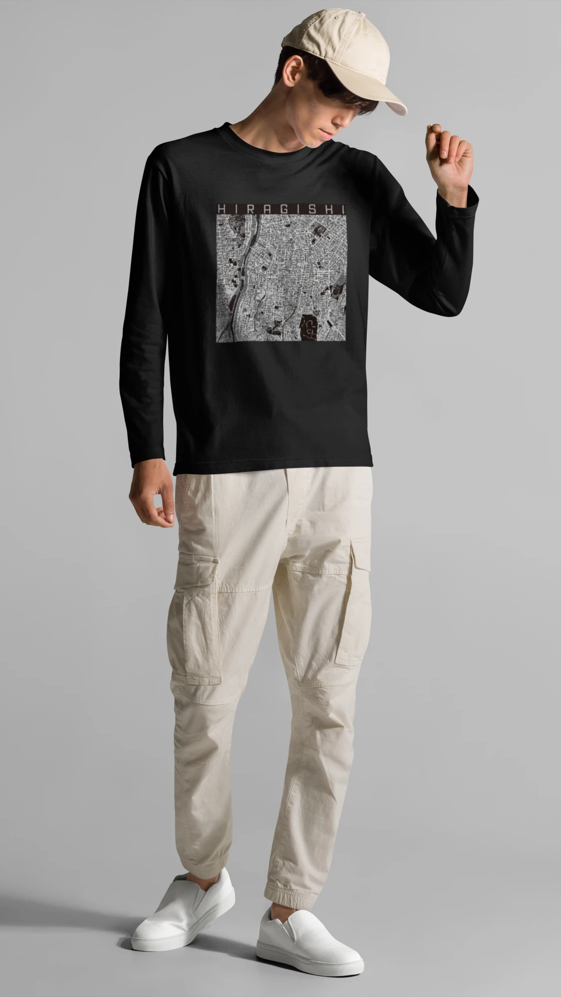幅広いシーズンにフィットする長袖Tシャツにあなたの街「平岸」のモノトーンマップをプリントしました。