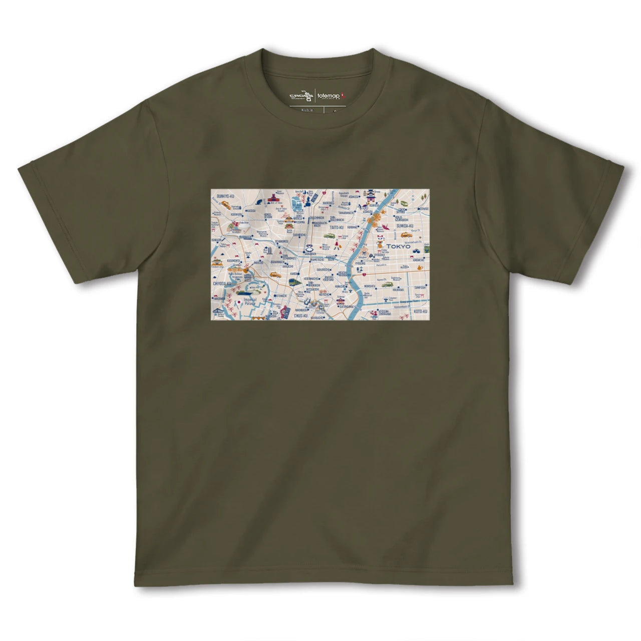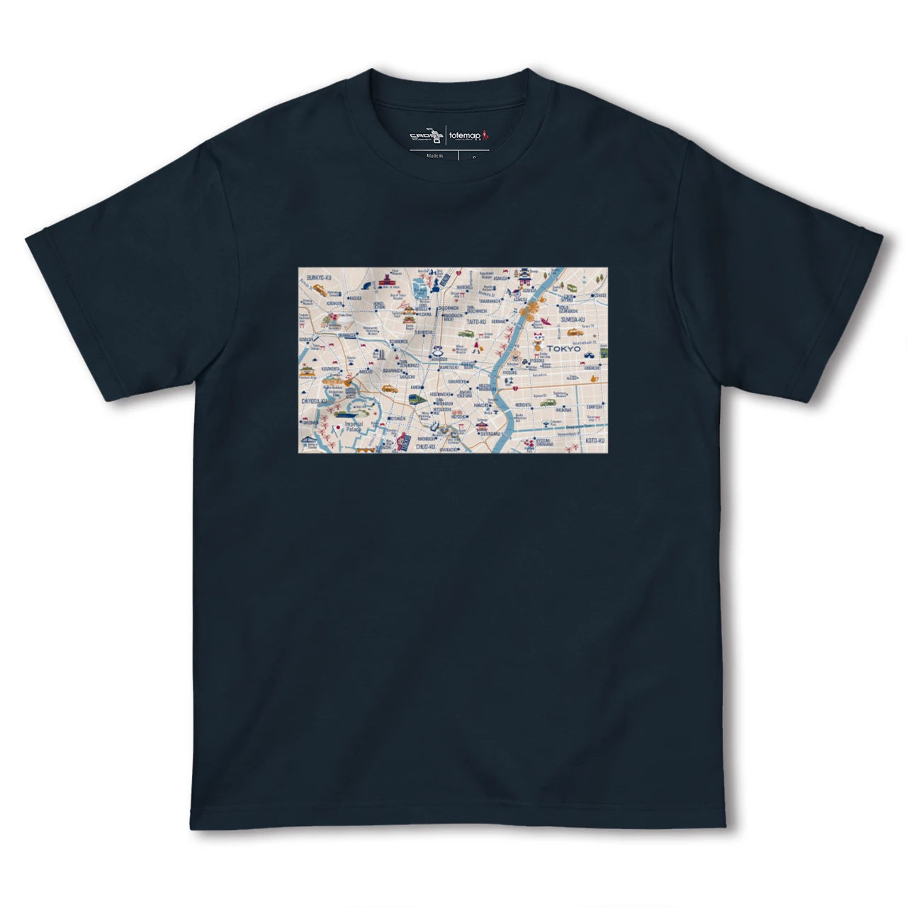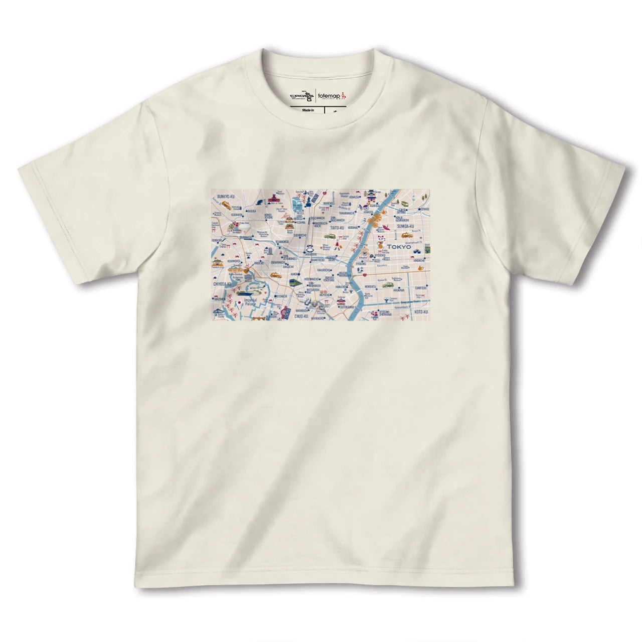 totemapとのコラボレーションで生まれた東京都心東部のカラフルな地図柄Tシャツです。