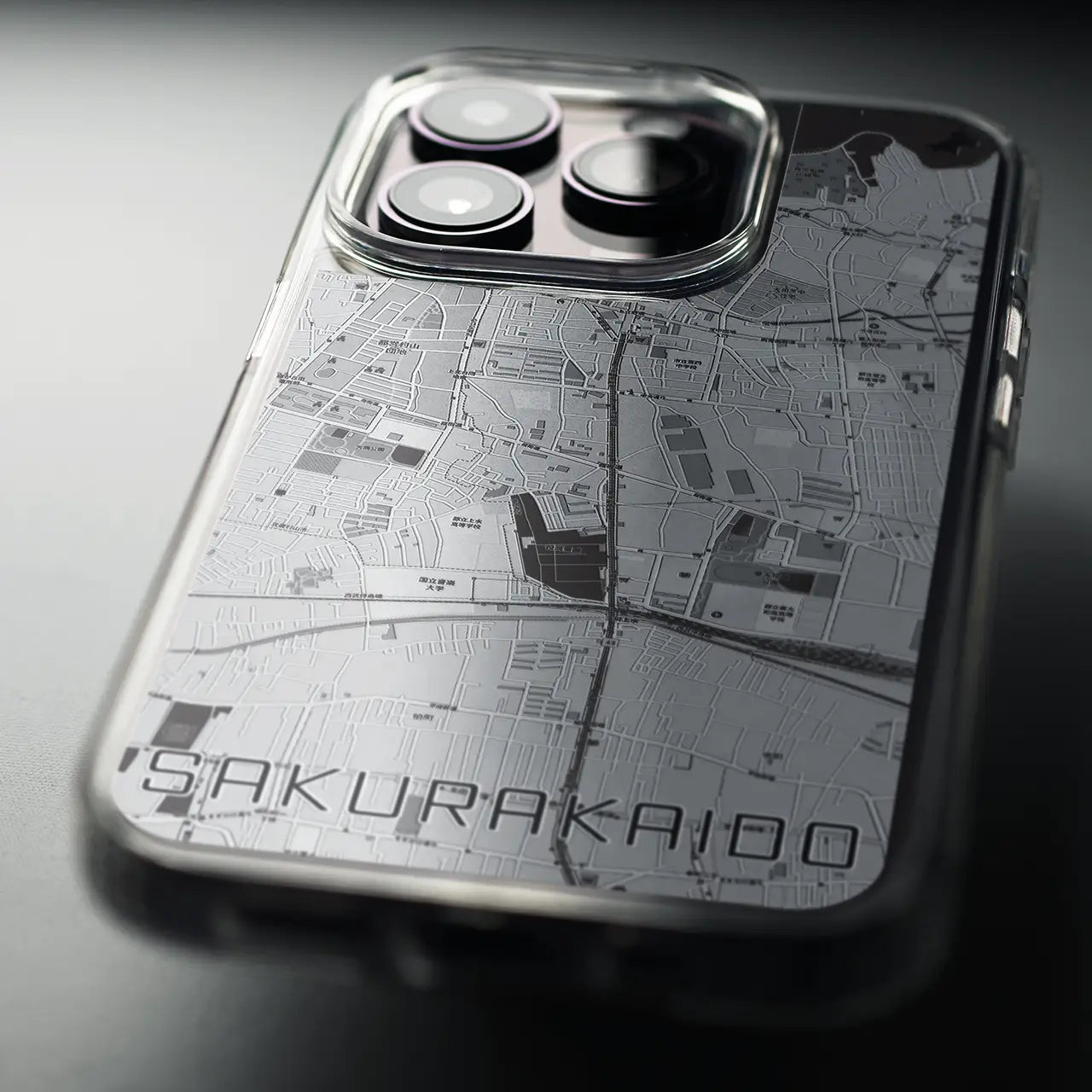 【桜街道(東京都)】地図柄iPhoneケース(MagSafeタイプ)モノトーン・iPhone 16 Pro 用