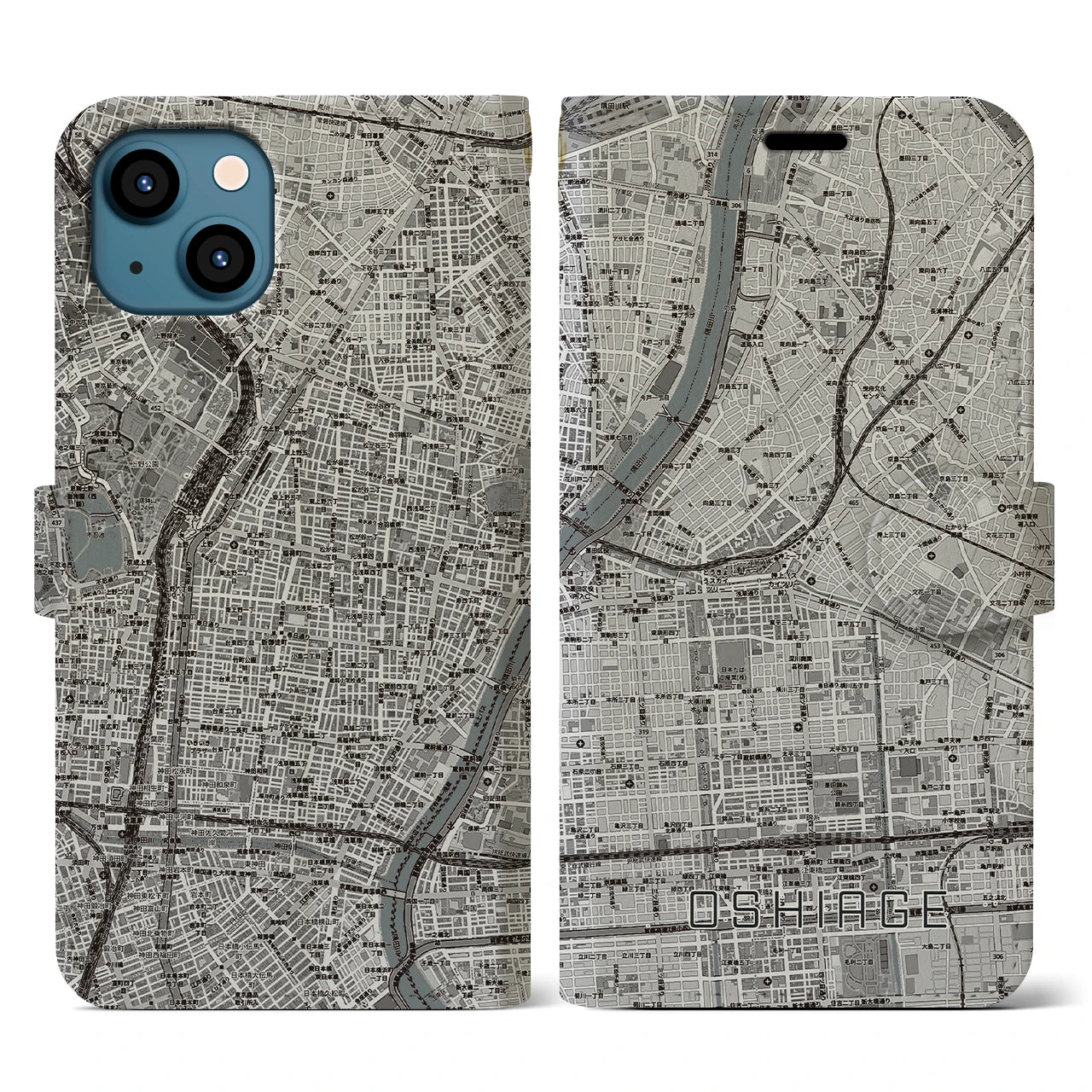 【押上(東京都)】地図柄iPhoneケース(手帳タイプ)モノトーン・iPhone 13 用