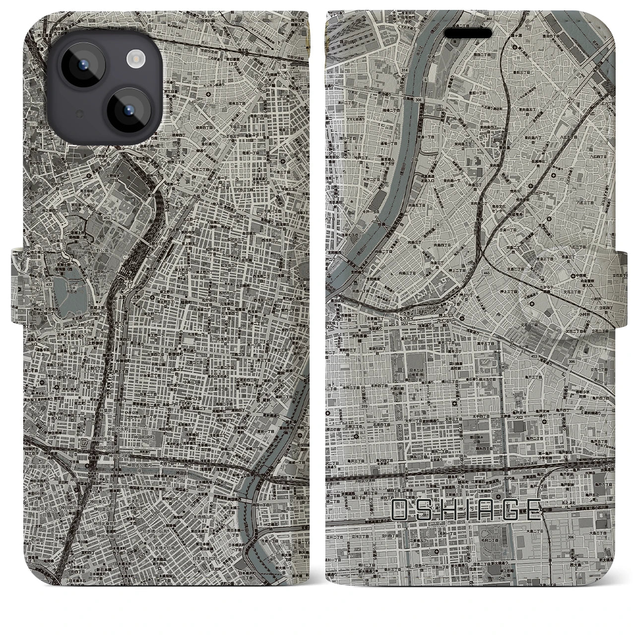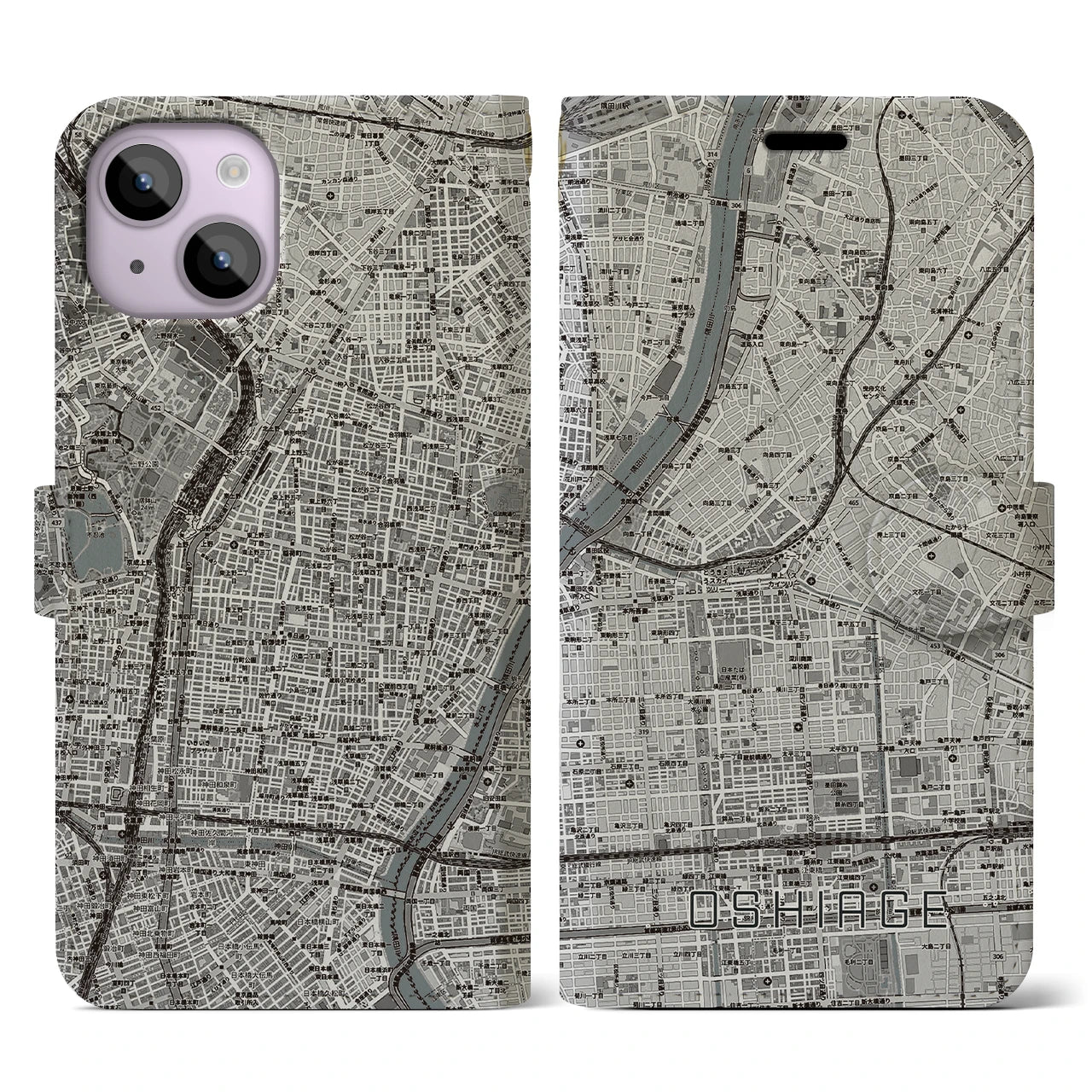 【押上(東京都)】地図柄iPhoneケース(手帳タイプ)モノトーン・iPhone 14 Plus 用