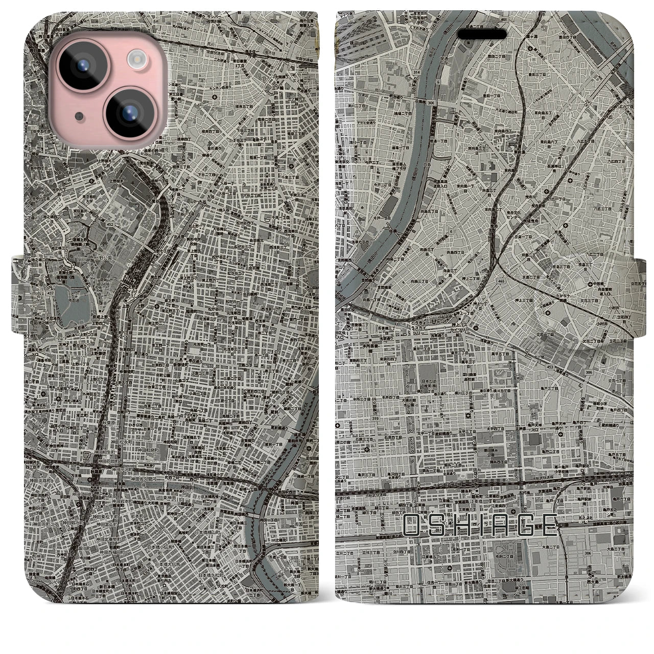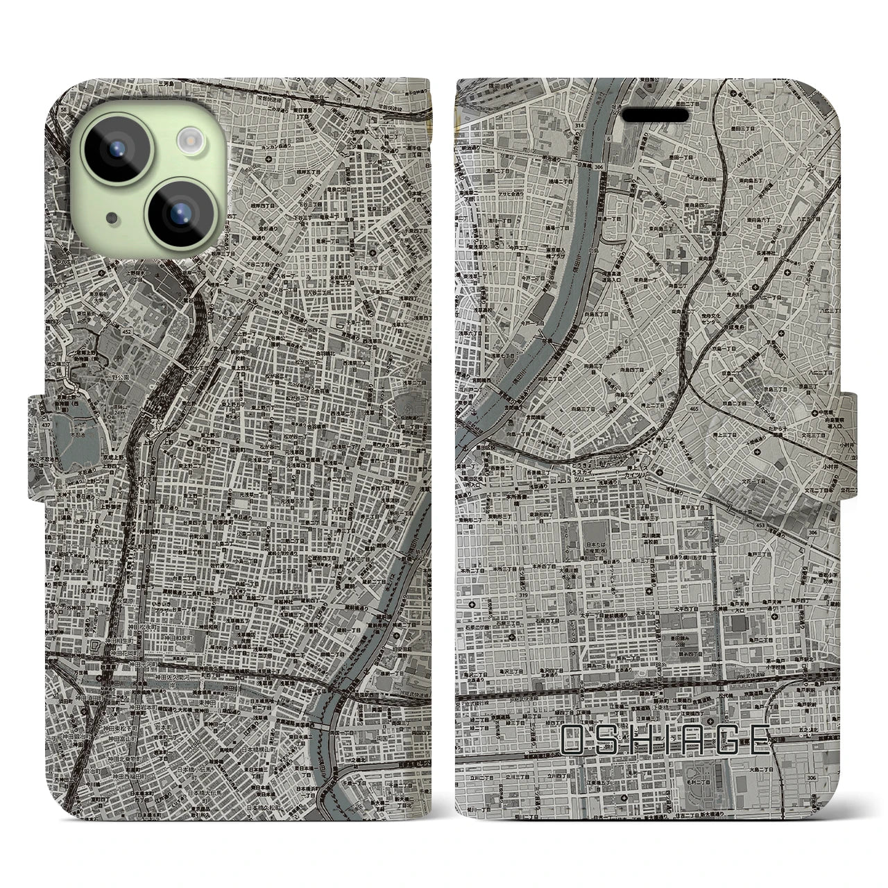 【押上(東京都)】地図柄iPhoneケース(手帳タイプ)モノトーン・iPhone 15 Plus 用