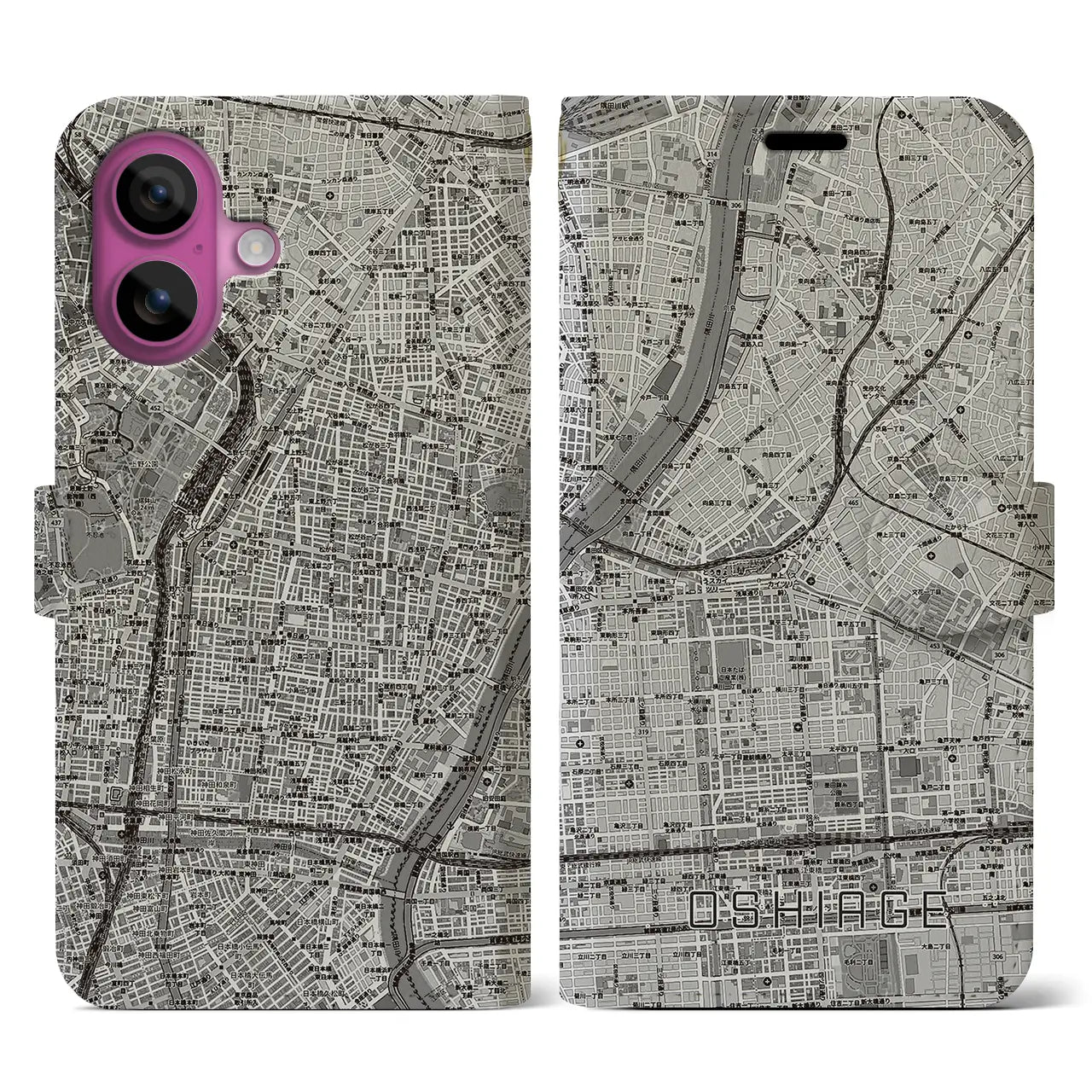 【押上(東京都)】地図柄iPhoneケース(手帳タイプ)モノトーン・iPhone 16 Plus 用