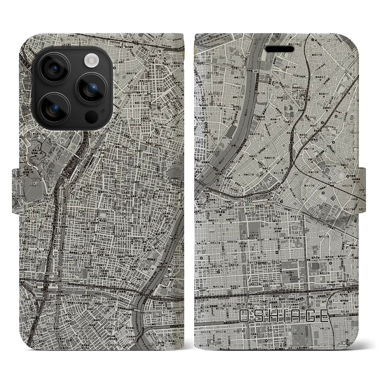 【押上(東京都)】地図柄iPhoneケース(手帳タイプ)モノトーン・iPhone 15 Pro Max 用