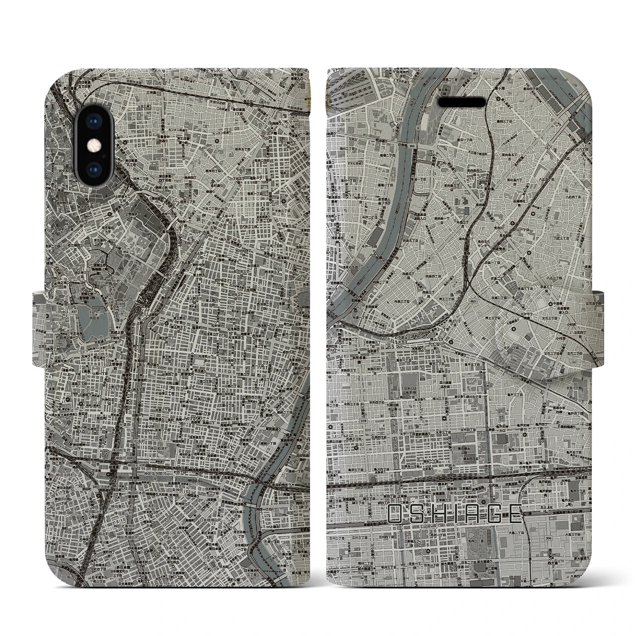 【押上(東京都)】地図柄iPhoneケース(手帳タイプ)モノトーン・iPhone XS Max 用