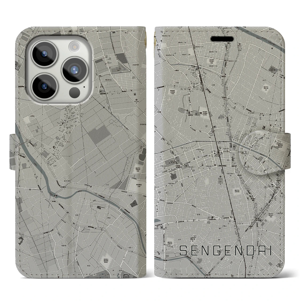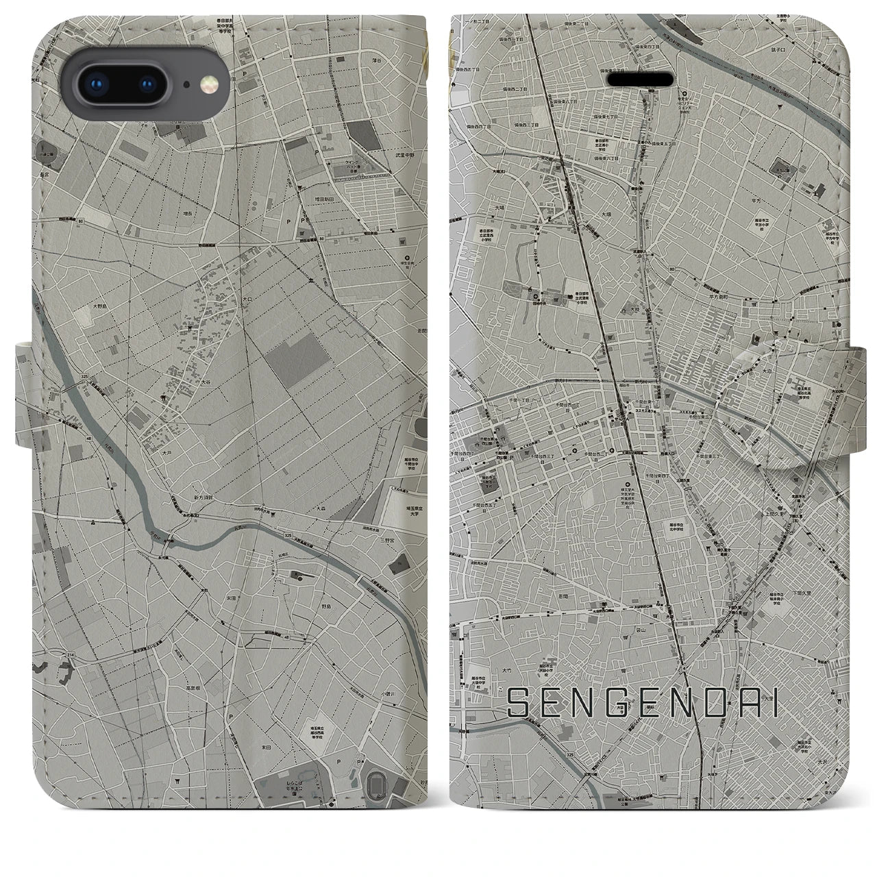 思い出の街、今を暮らす街、あなたが愛する「せんげん台」の手帳タイプ地図柄iPhoneケースです。両面にまたがる大きなプリントで、離れていても「せんげん台」をいつも身近に感じさせてくれます。
