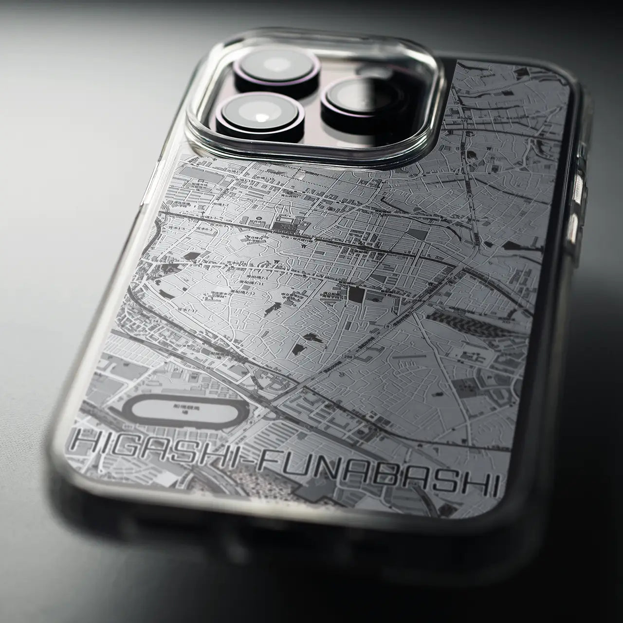 【東船橋(千葉県)】地図柄iPhoneケース(MagSafeタイプ)モノトーン・iPhone 16 Pro 用