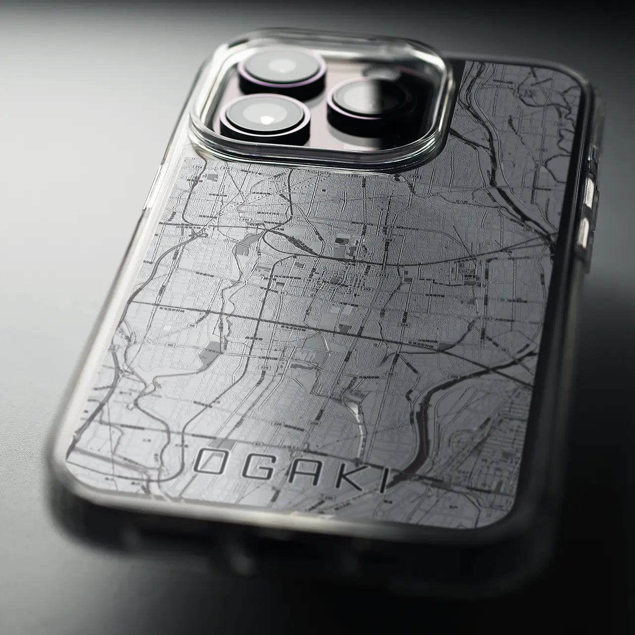 【大垣(岐阜県)】地図柄iPhoneケース(MagSafeタイプ)モノトーン・iPhone 16 Pro 用