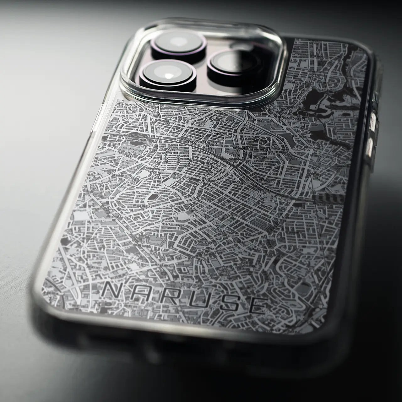 【成瀬(東京都)】地図柄iPhoneケース(MagSafeタイプ)モノトーン・iPhone 16 Pro 用
