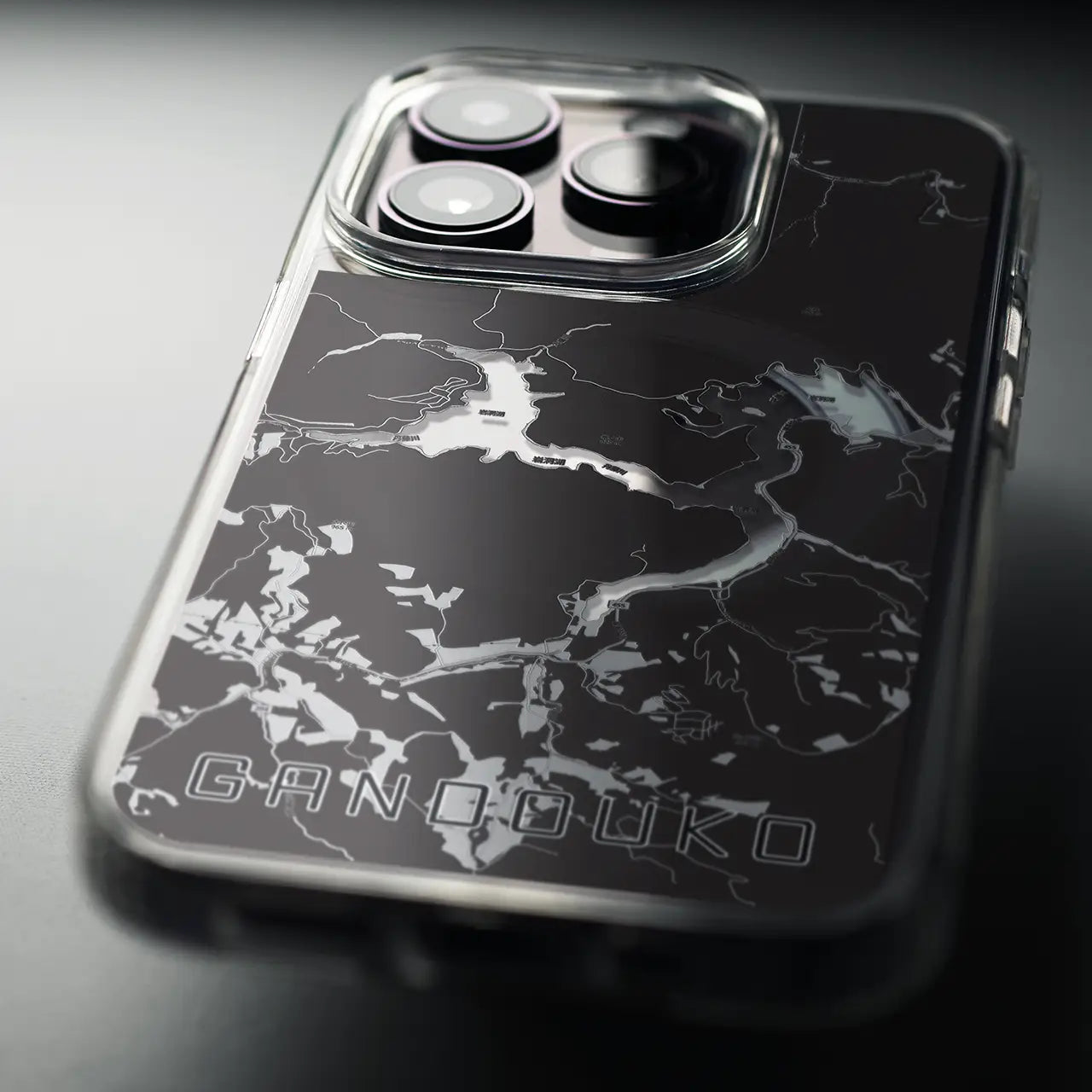【岩洞湖(岩手県)】地図柄iPhoneケース(MagSafeタイプ)モノトーン・iPhone 16 Pro 用