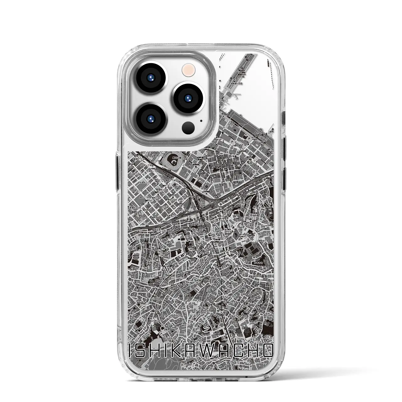 【石川町(神奈川県)】地図柄iPhoneケース(MagSafeタイプ)モノトーン・iPhone 16 Pro 用