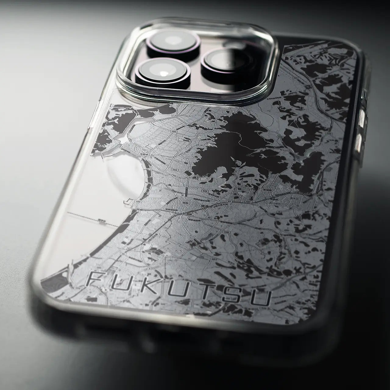 【福津(福岡県)】地図柄iPhoneケース(MagSafeタイプ)モノトーン・iPhone 16 Pro 用