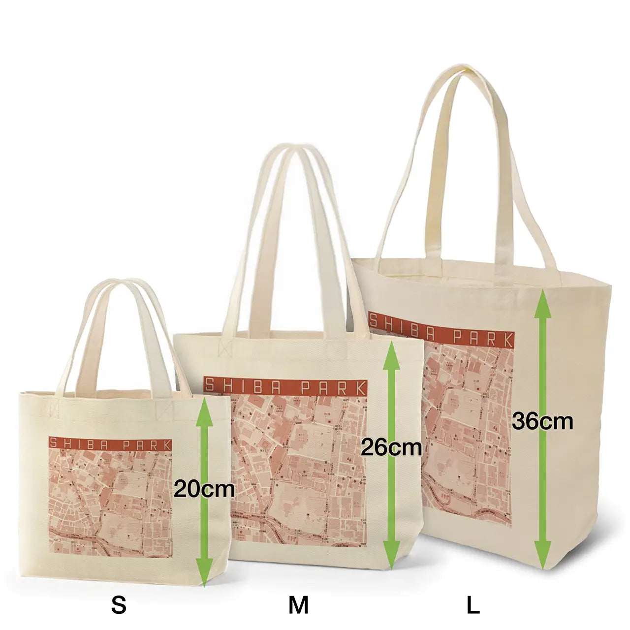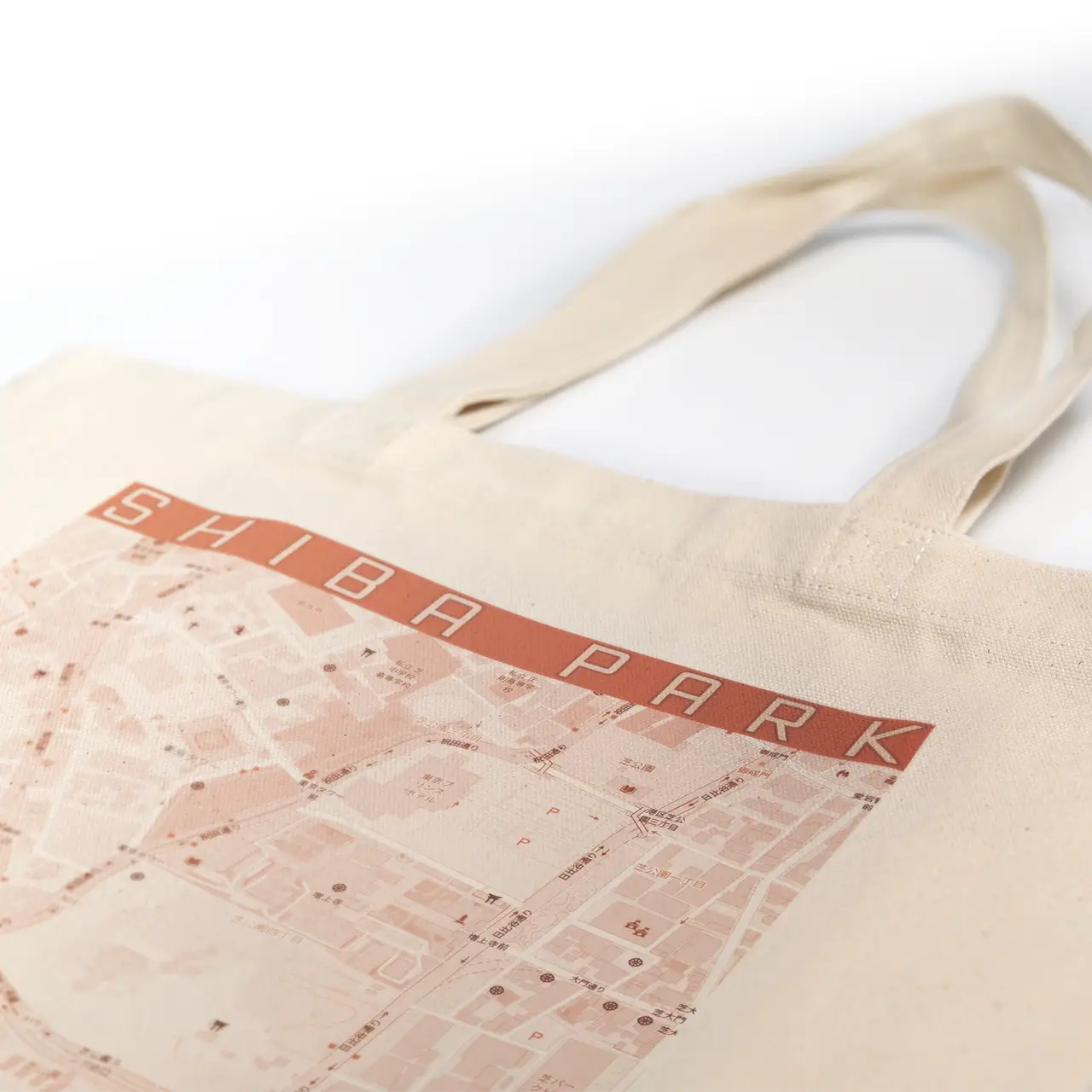 染色していないナチュラルコットンの風合いを生かしつつ芝公園のマップをプリントしました。