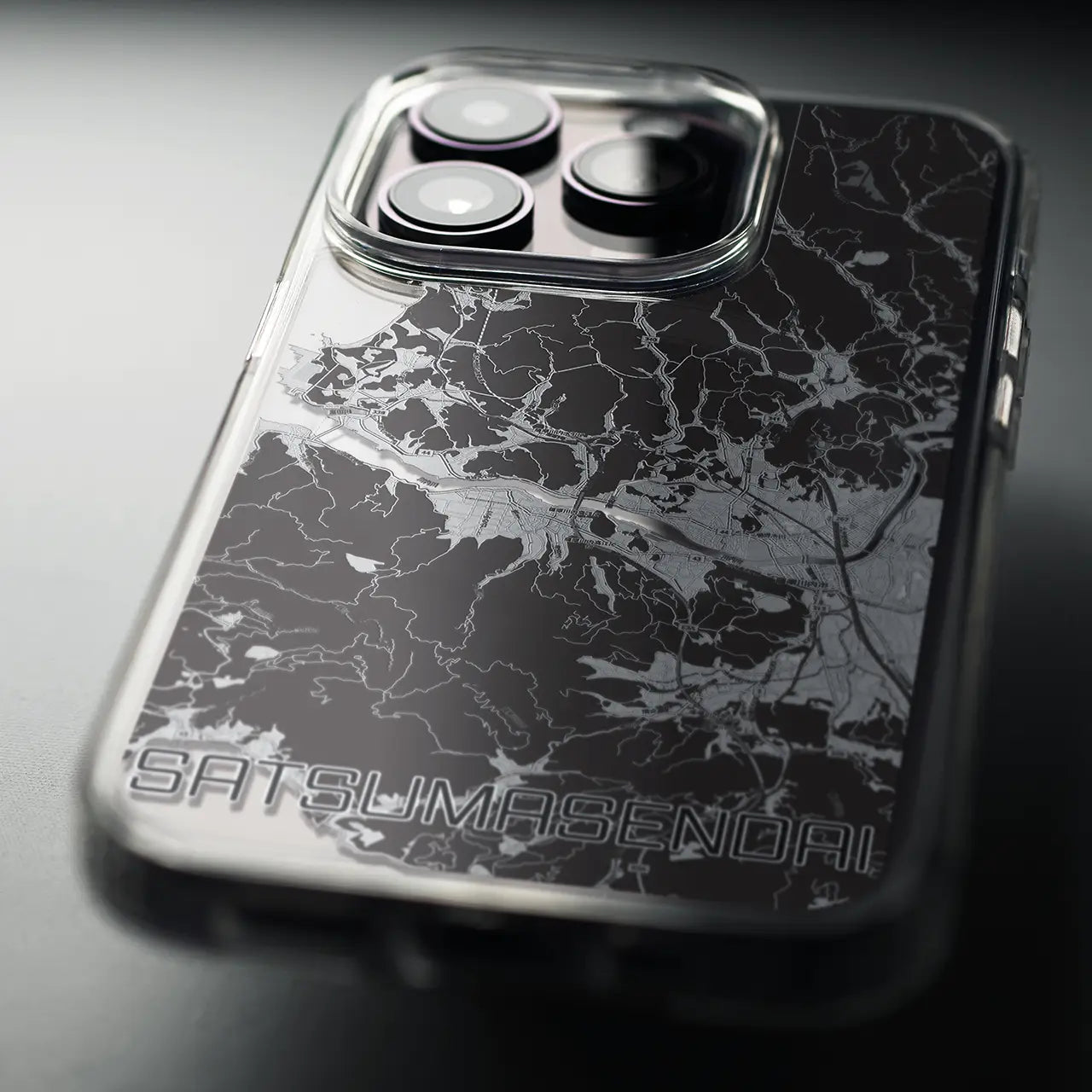 【薩摩川内(鹿児島県)】地図柄iPhoneケース(MagSafeタイプ)モノトーン・iPhone 16 Pro 用