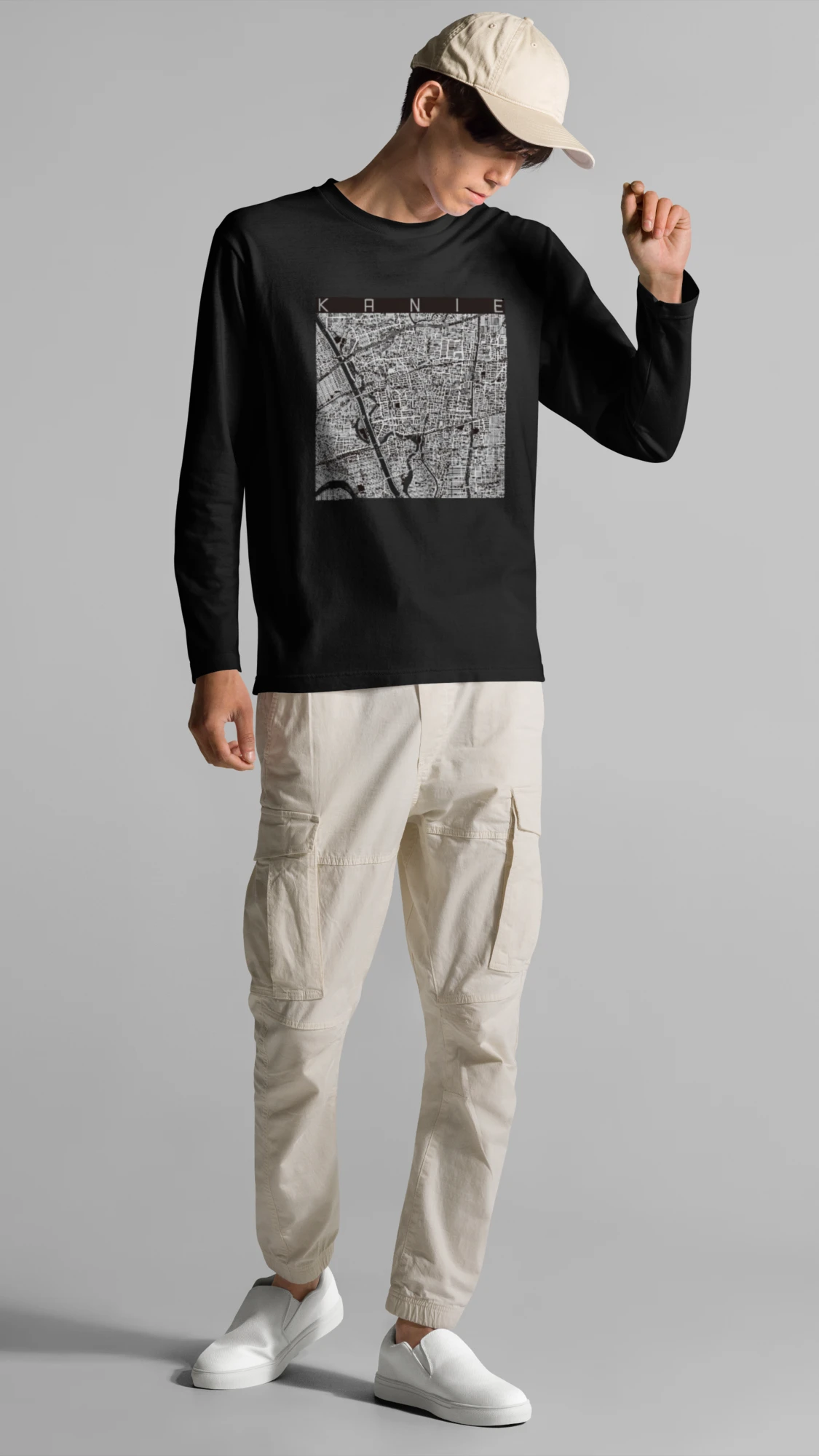 幅広いシーズンにフィットする長袖Tシャツにあなたの街「蟹江」のモノトーンマップをプリントしました。