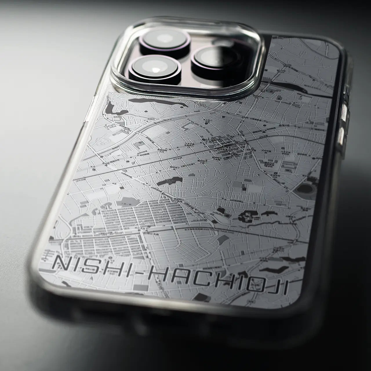 【西八王子(東京都)】地図柄iPhoneケース(MagSafeタイプ)モノトーン・iPhone 16 Pro 用