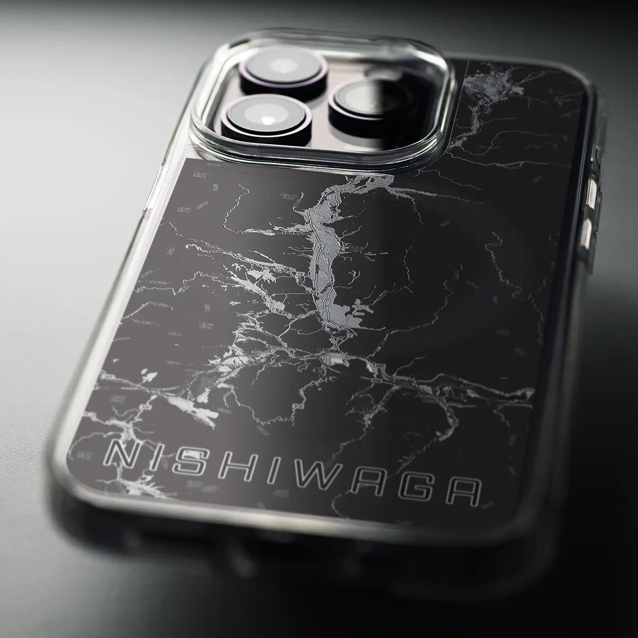 【西和賀(岩手県)】地図柄iPhoneケース(MagSafeタイプ)モノトーン・iPhone 16 Pro 用