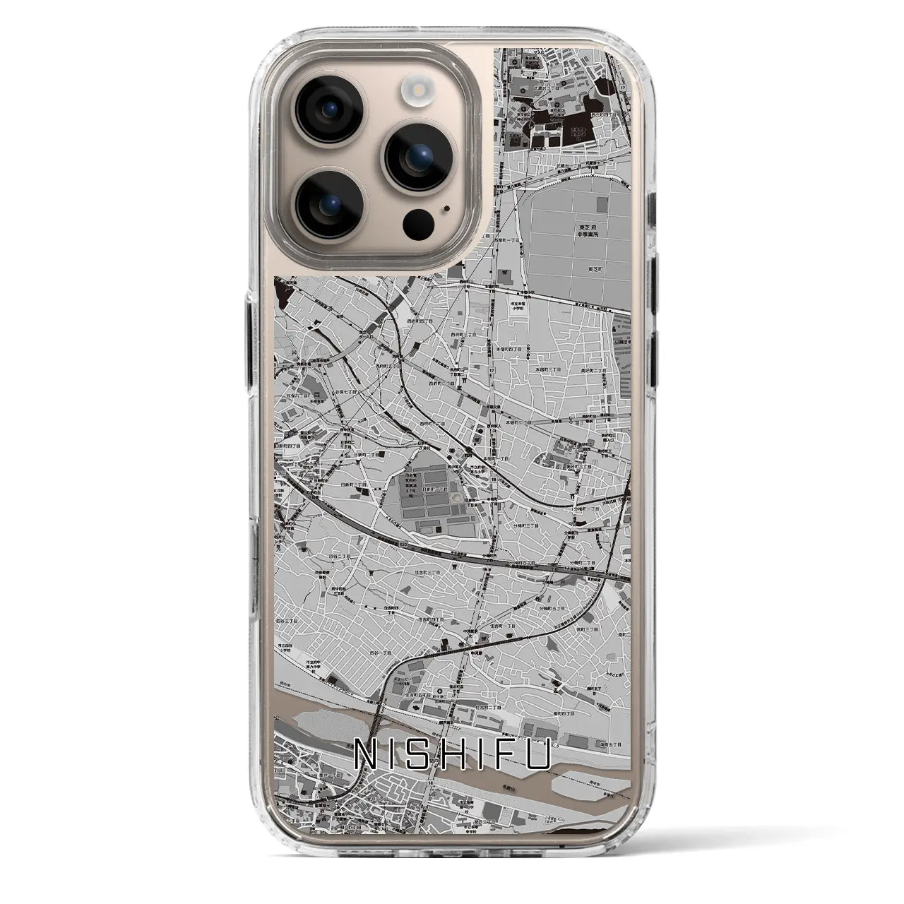 【西府(東京都)】地図柄iPhoneケース(MagSafeタイプ)モノトーン・iPhone 16 Pro 用