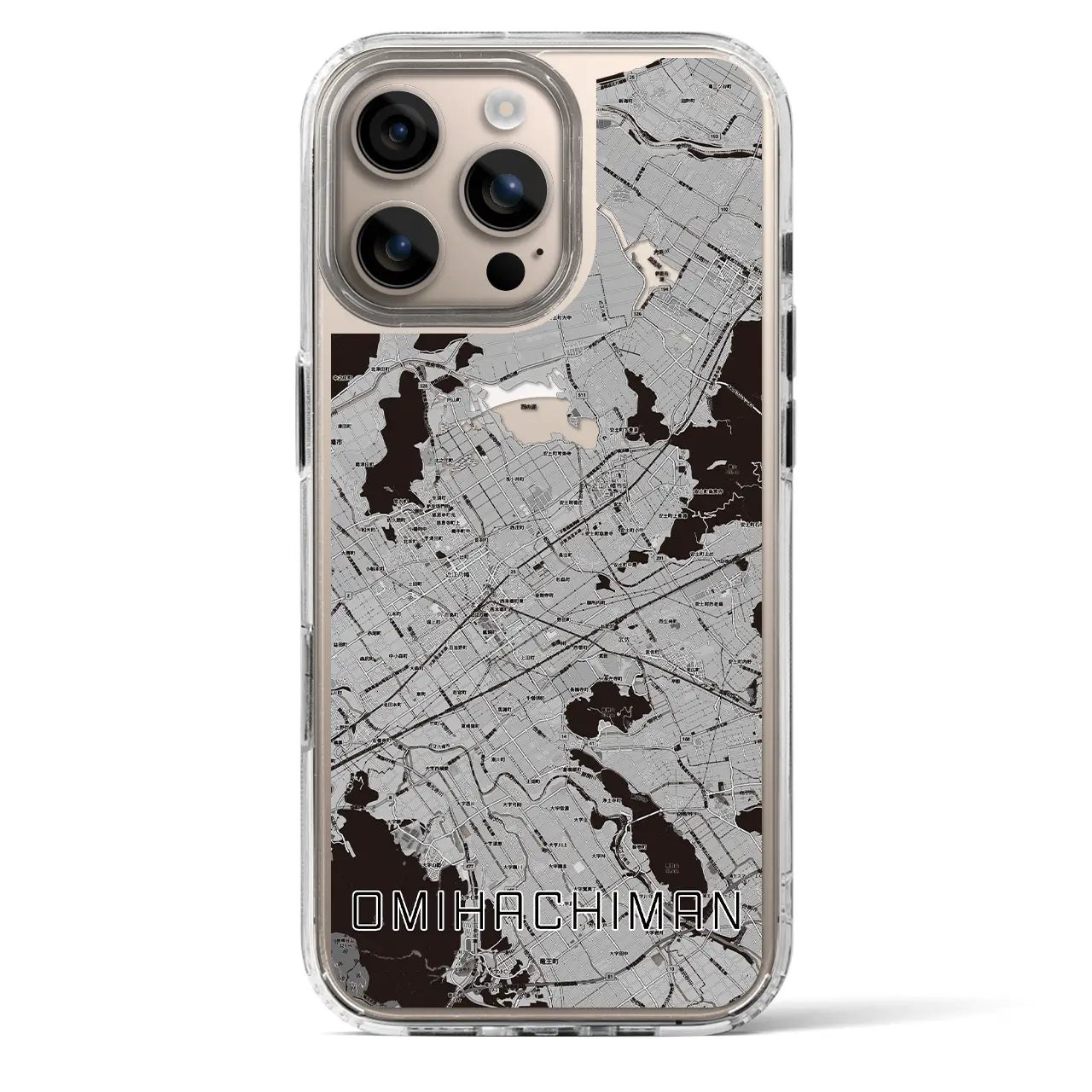 【近江八幡2(滋賀県)】地図柄iPhoneケース(MagSafeタイプ)モノトーン・iPhone 16 Pro 用