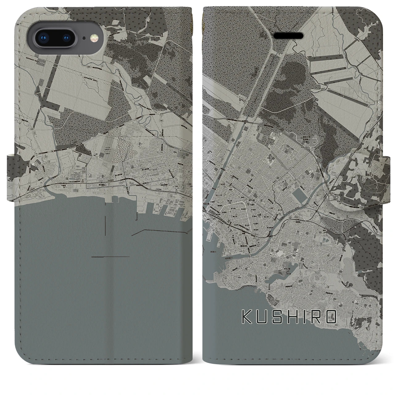 【釧路(北海道)】地図柄iPhoneケース(手帳タイプ)モノトーン・iPhone 8Plus /7Plus / 6sPlus / 6Plus 用