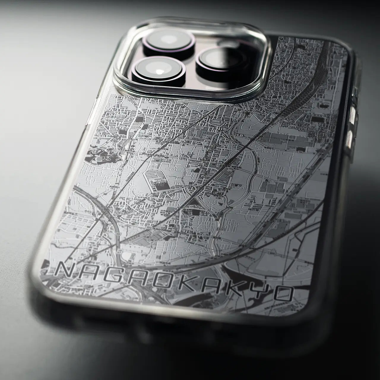 【長岡京(京都府)】地図柄iPhoneケース(MagSafeタイプ)モノトーン・iPhone 16 Pro 用