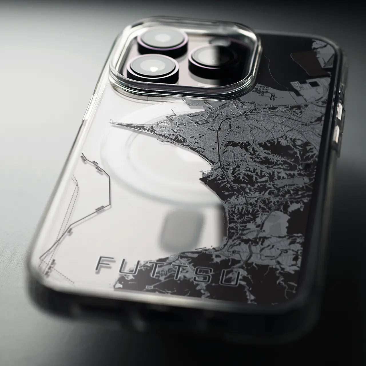 【富津(千葉県)】地図柄iPhoneケース(MagSafeタイプ)モノトーン・iPhone 16 Pro 用