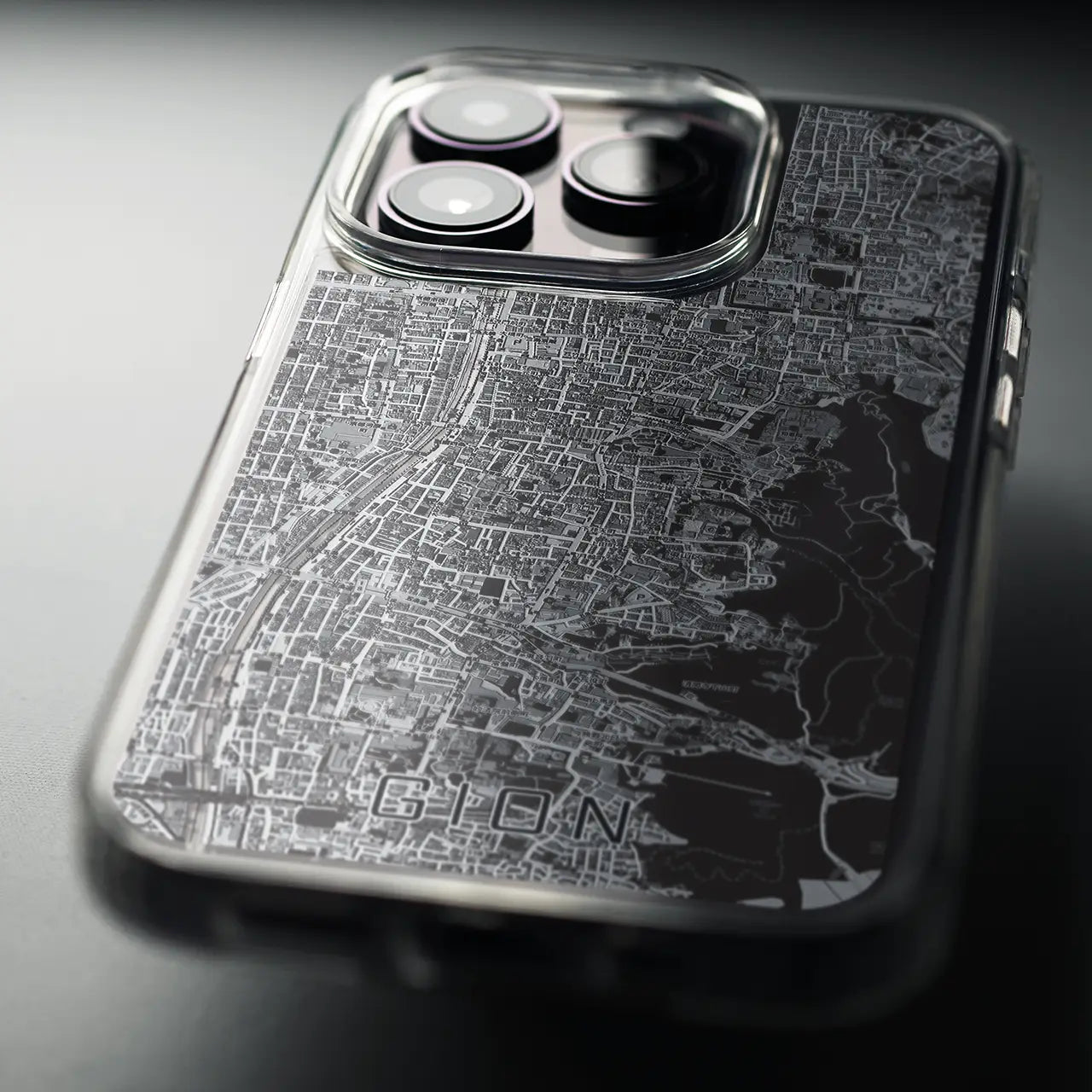 【祇園(京都府)】地図柄iPhoneケース(MagSafeタイプ)モノトーン・iPhone 16 Pro 用