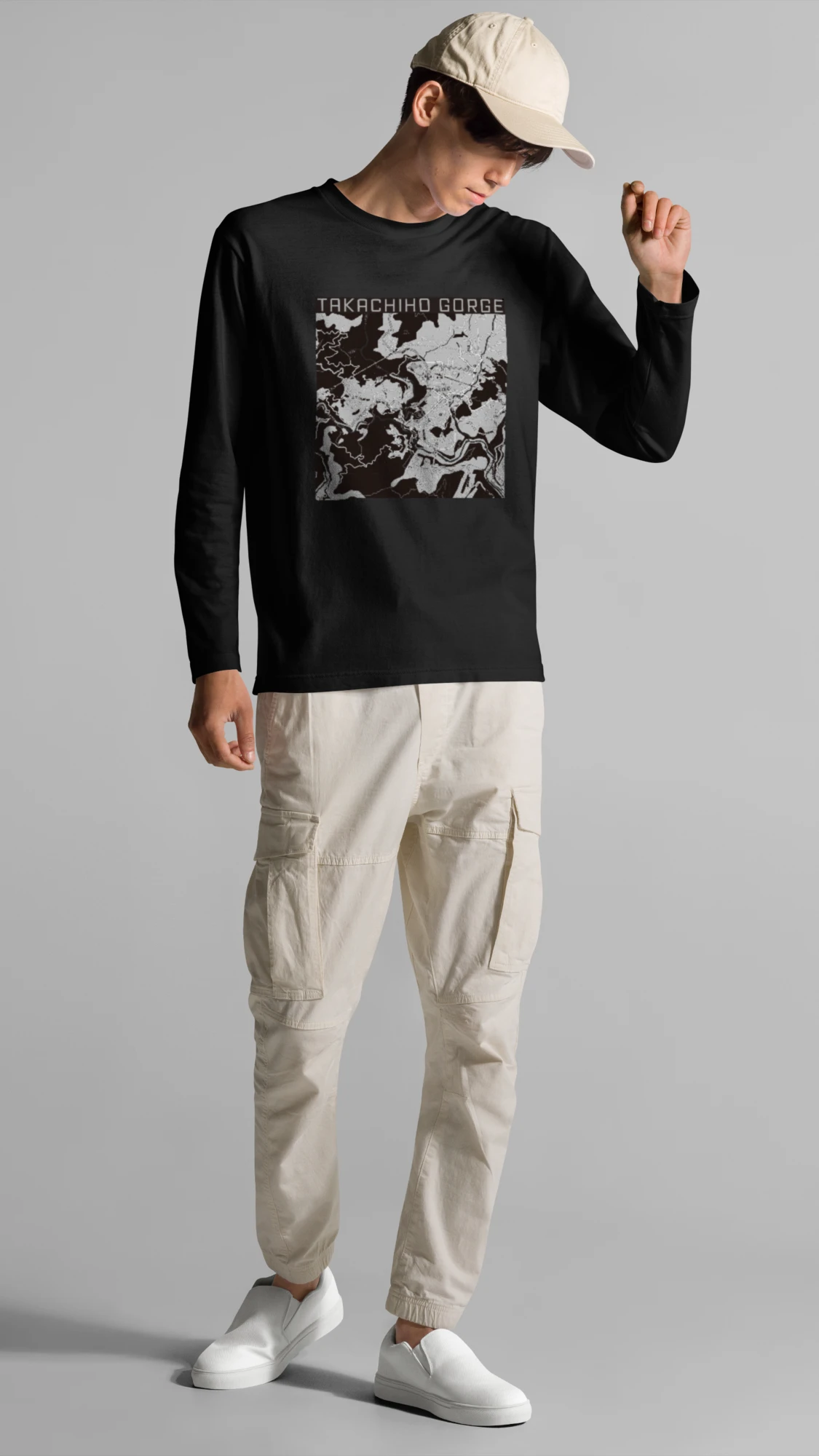 幅広いシーズンにフィットする長袖Tシャツにあなたの街「高千穂峡」のモノトーンマップをプリントしました。