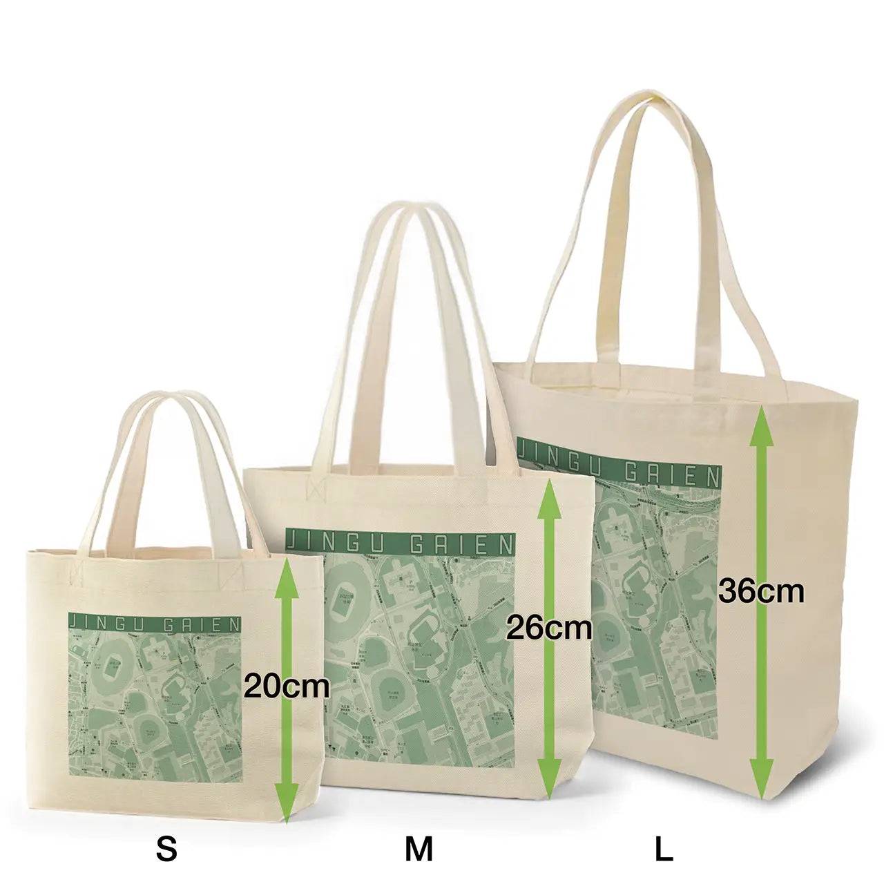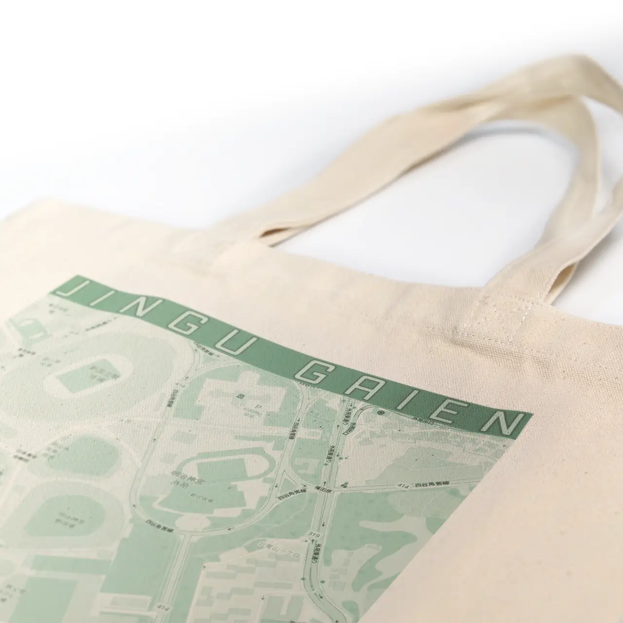 染色していないナチュラルコットンの風合いを生かしつつ神宮外苑のマップをプリントしました。