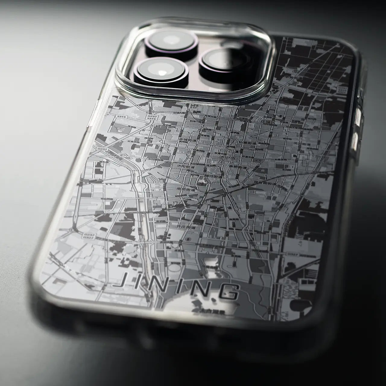 【済寧(中華人民共和国)】地図柄iPhoneケース(MagSafeタイプ)モノトーン・iPhone 16 Pro 用