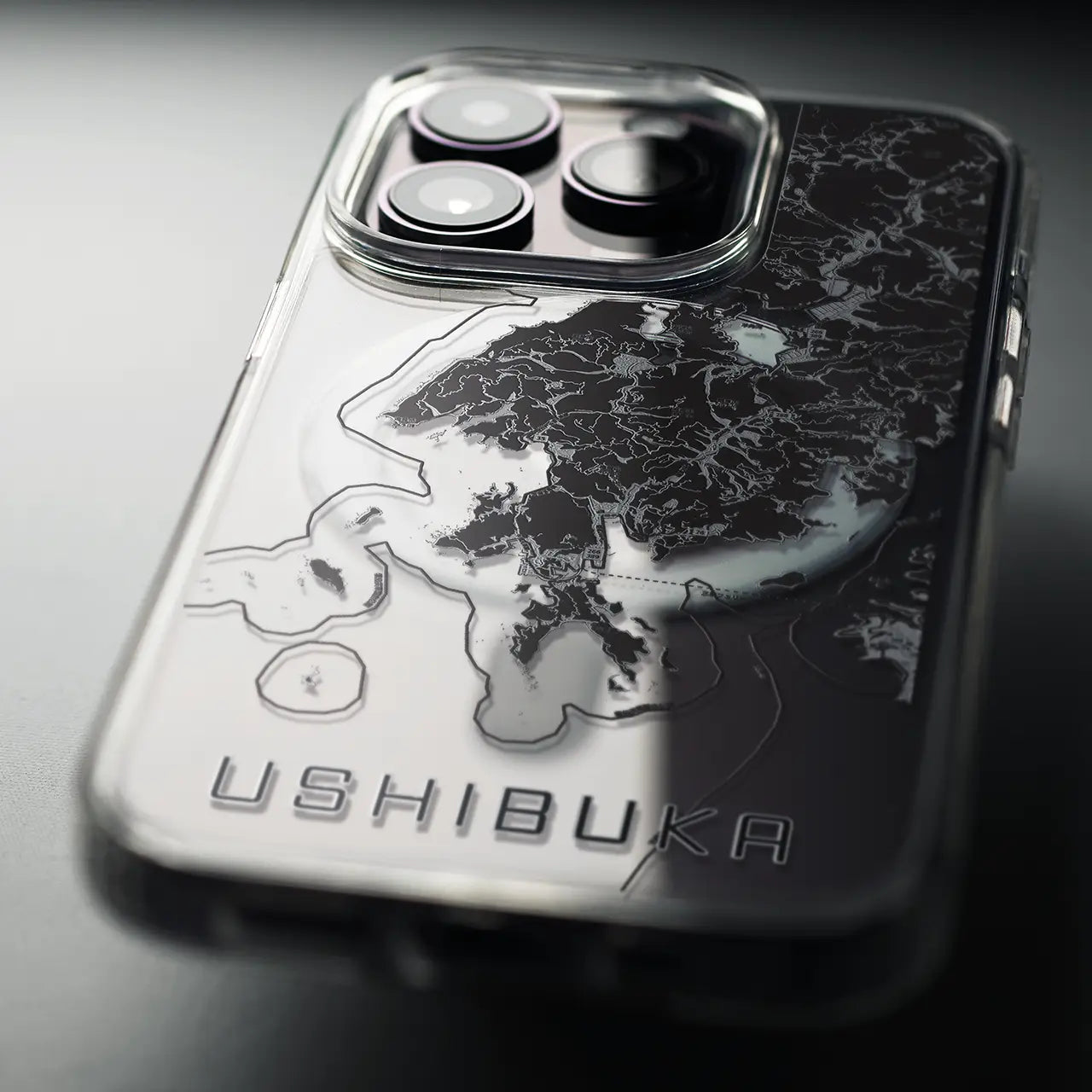 【牛深(熊本県)】地図柄iPhoneケース(MagSafeタイプ)モノトーン・iPhone 16 Pro 用
