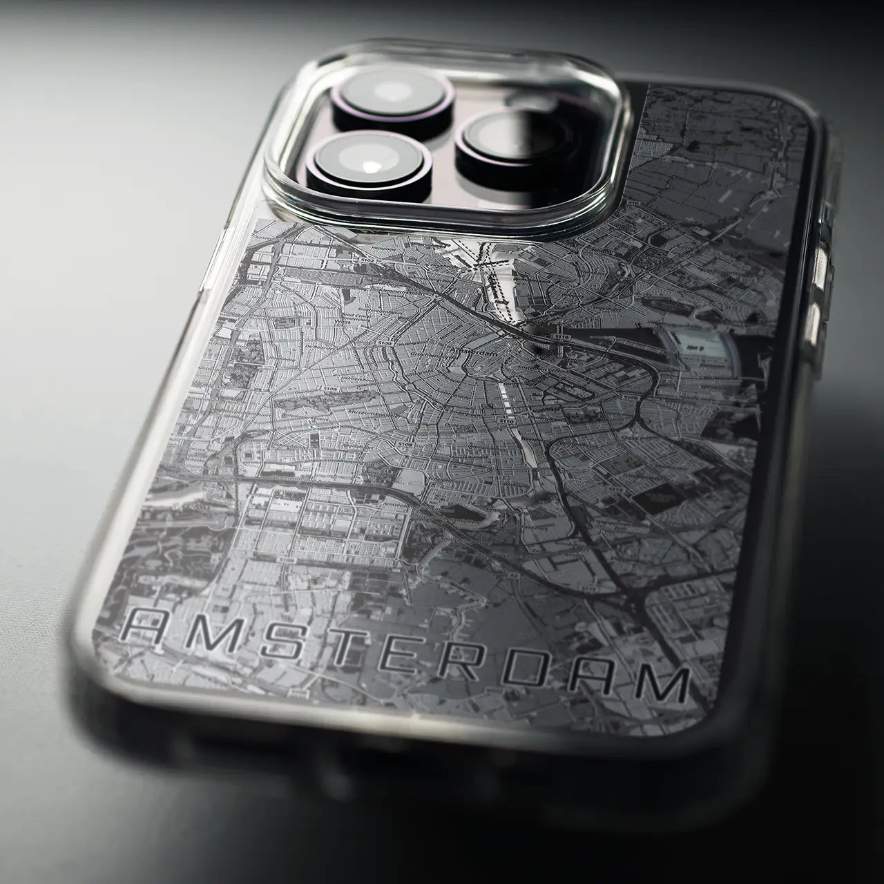 【アムステルダム(オランダ)】地図柄iPhoneケース(MagSafeタイプ)モノトーン・iPhone 16 Pro 用