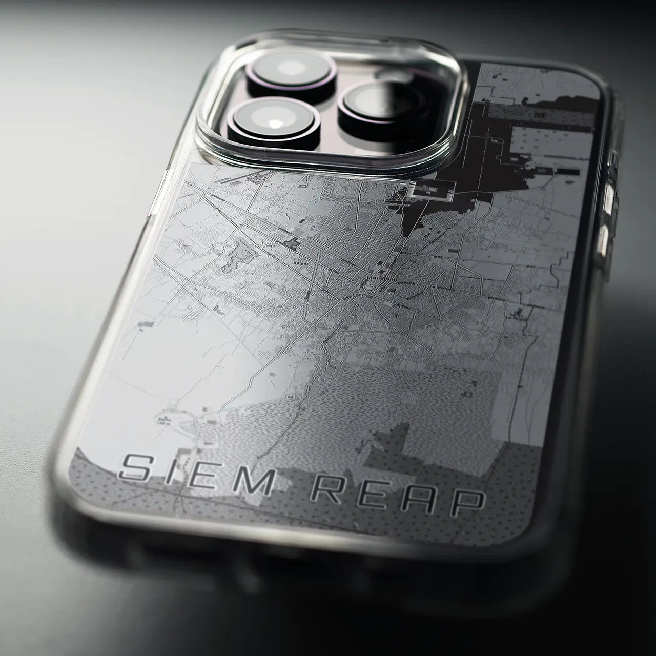 【シェムリアップ(カンボジア)】地図柄iPhoneケース(MagSafeタイプ)モノトーン・iPhone 16 Pro 用