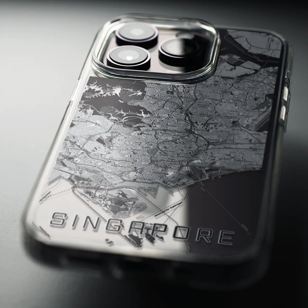 【シンガポール】地図柄iPhoneケース(MagSafeタイプ)モノトーン・iPhone 16 Pro 用