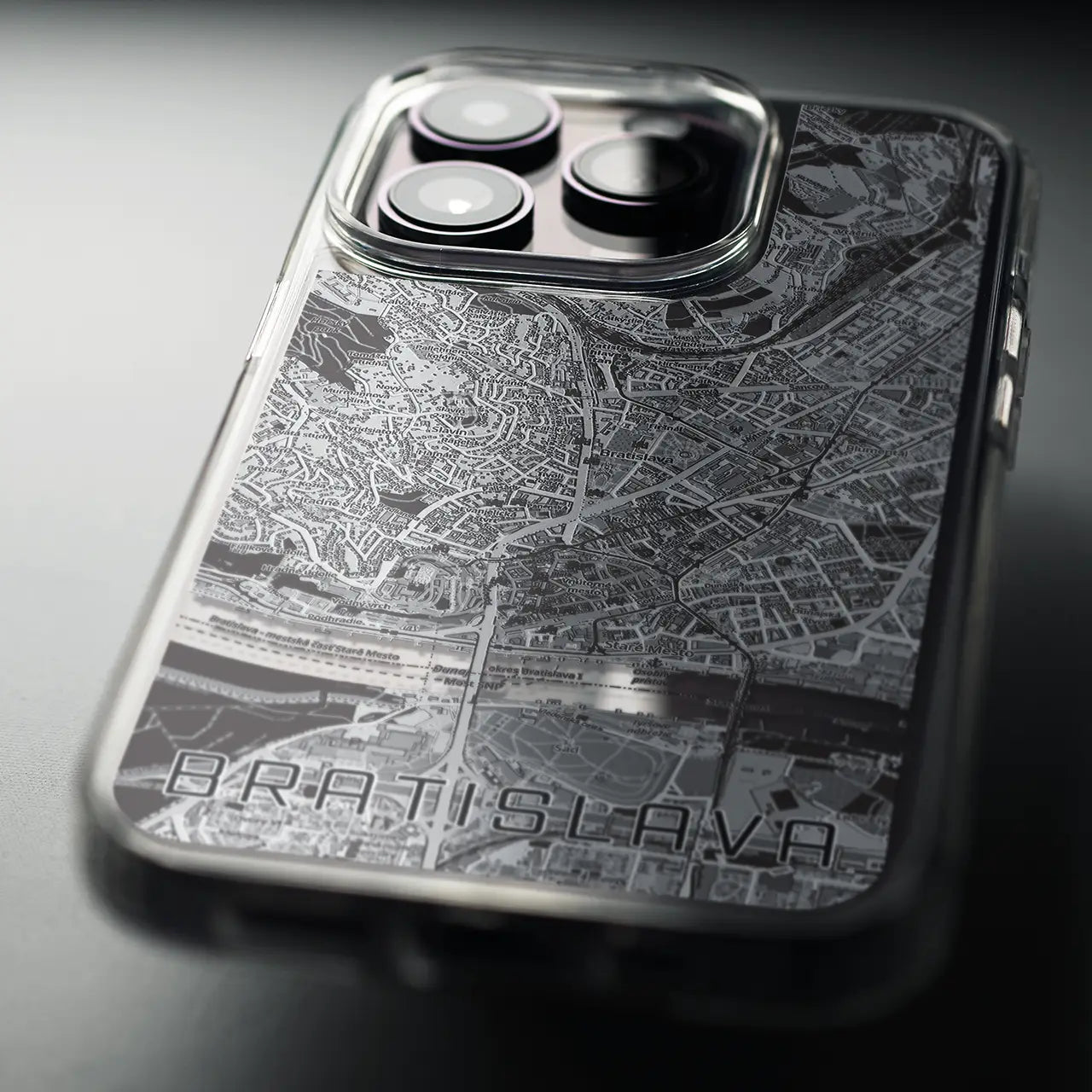 【ブラチスラヴァ(スロバキア)】地図柄iPhoneケース(MagSafeタイプ)モノトーン・iPhone 16 Pro 用