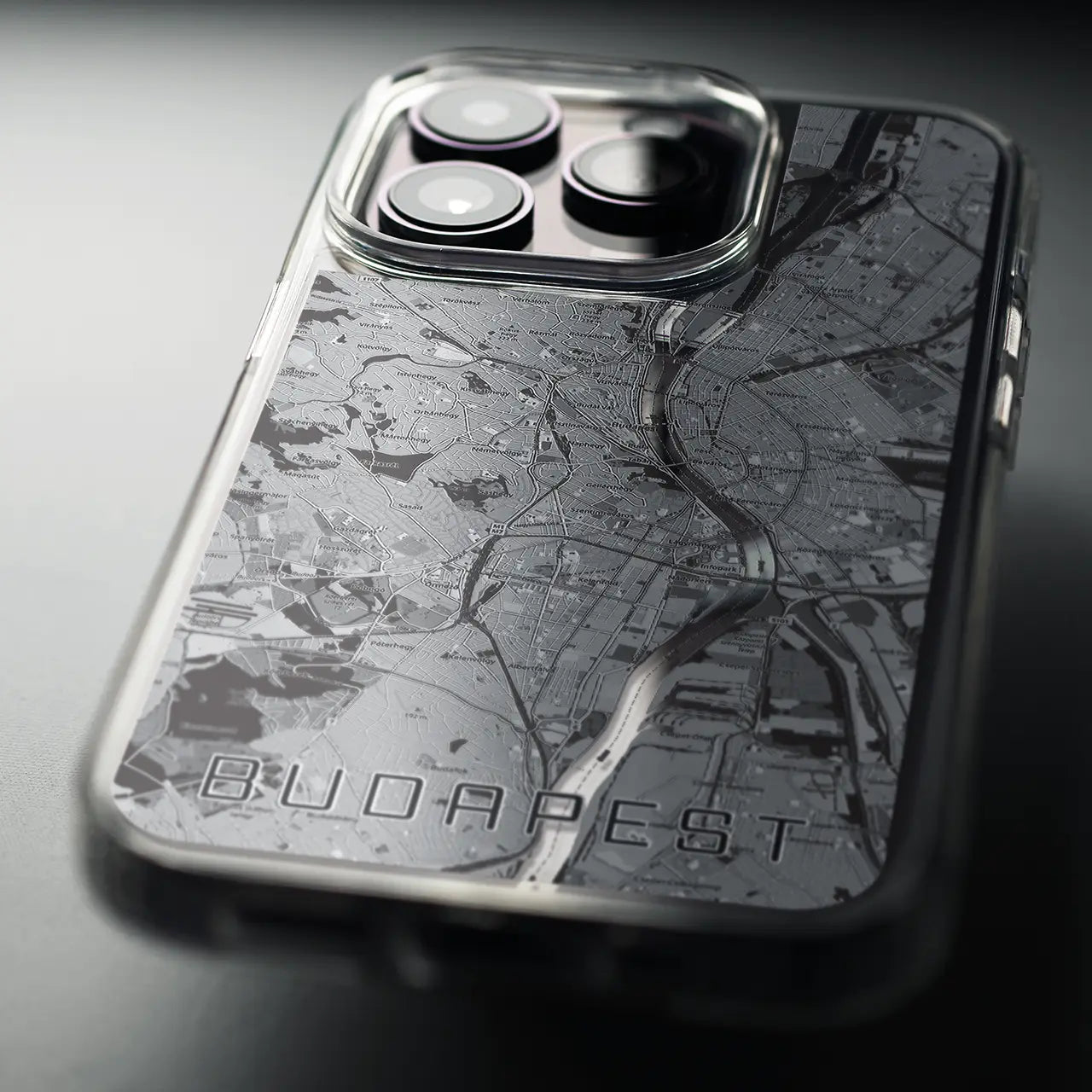 【ブダペスト(ハンガリー)】地図柄iPhoneケース(MagSafeタイプ)モノトーン・iPhone 16 Pro 用