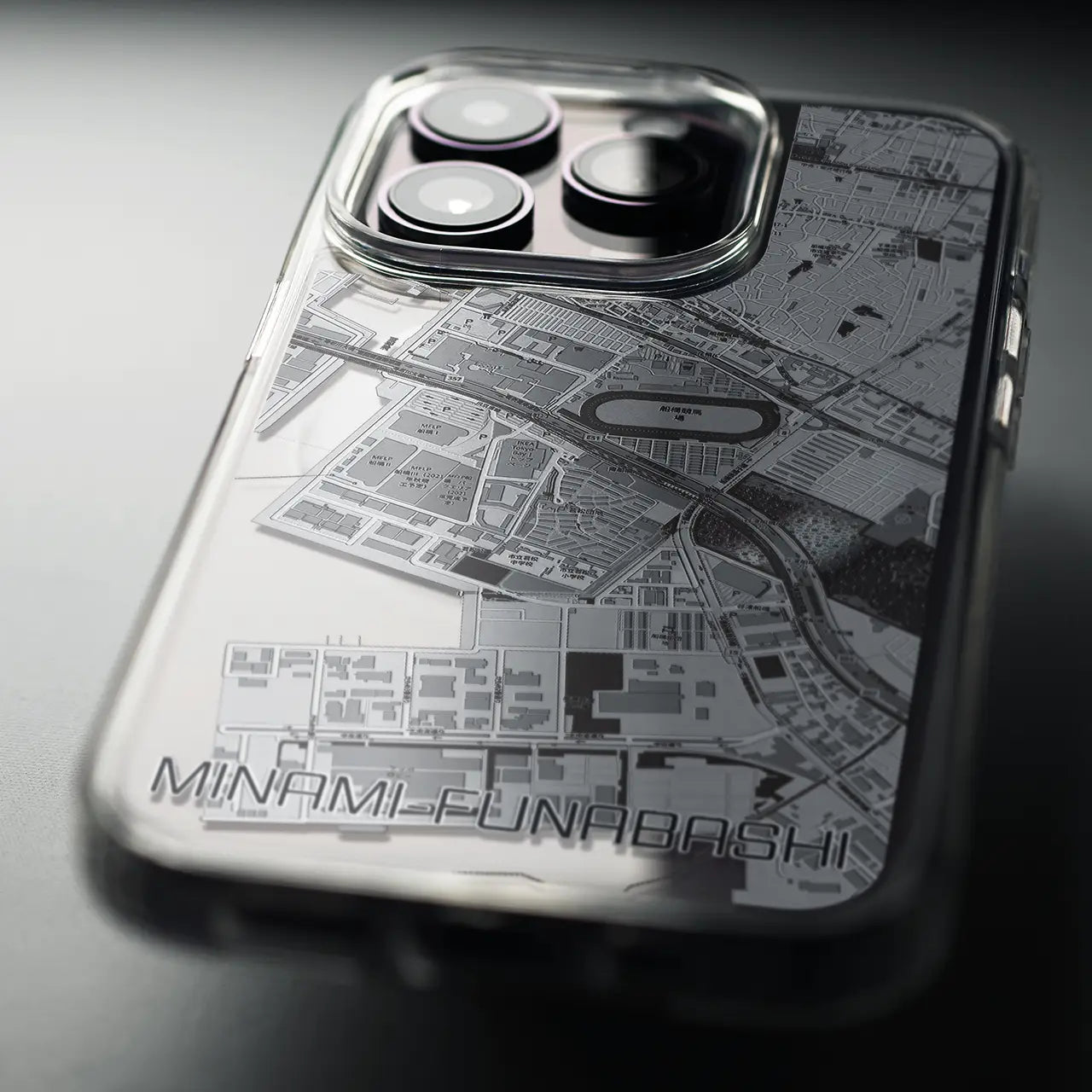 【南船橋(千葉県)】地図柄iPhoneケース(MagSafeタイプ)モノトーン・iPhone 16 Pro 用