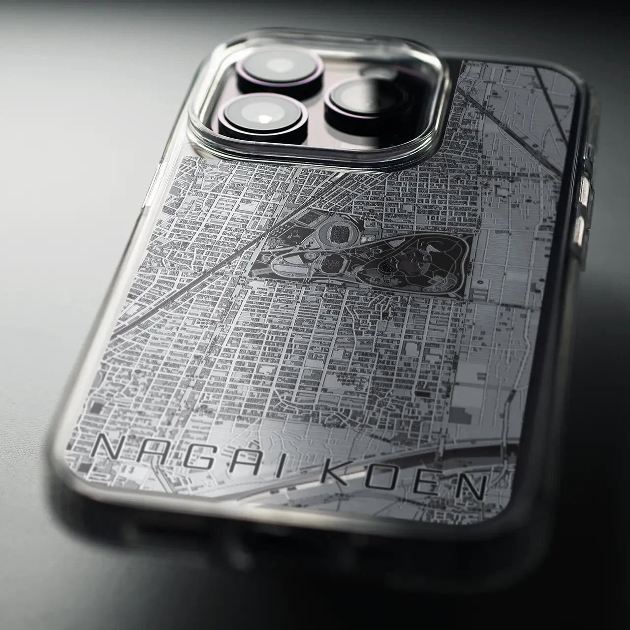 【長居公園(大阪府)】地図柄iPhoneケース(MagSafeタイプ)モノトーン・iPhone 16 Pro 用