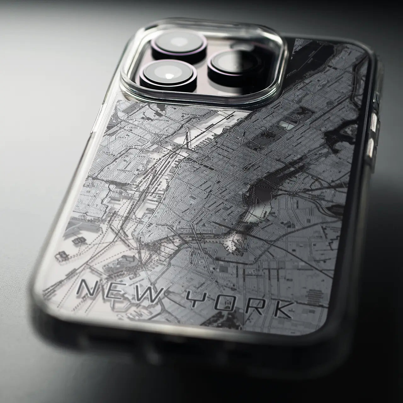 【ニューヨーク(アメリカ)】地図柄iPhoneケース(MagSafeタイプ)モノトーン・iPhone 16 Pro 用