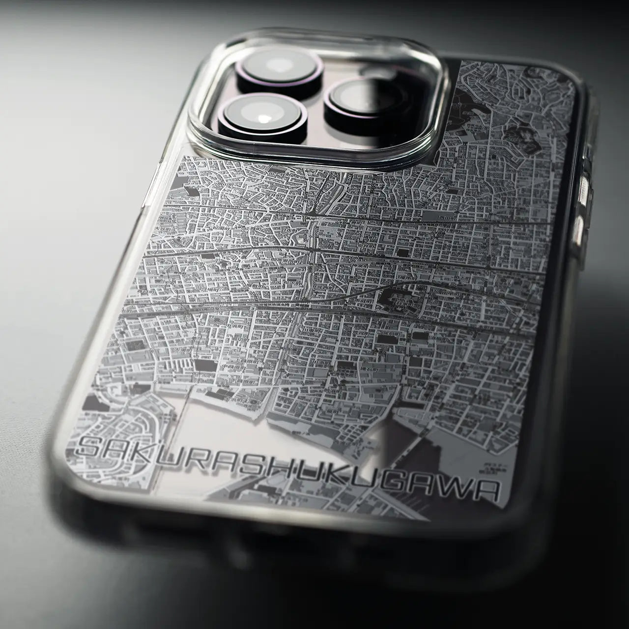 【さくら夙川(兵庫県)】地図柄iPhoneケース(MagSafeタイプ)モノトーン・iPhone 16 Pro 用
