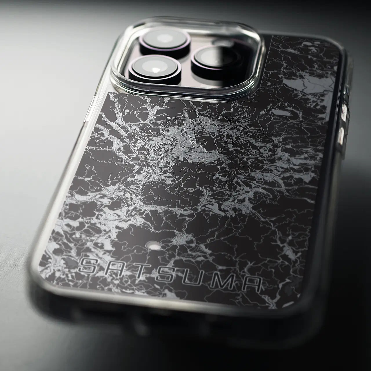 【さつま(鹿児島県)】地図柄iPhoneケース(MagSafeタイプ)モノトーン・iPhone 16 Pro 用