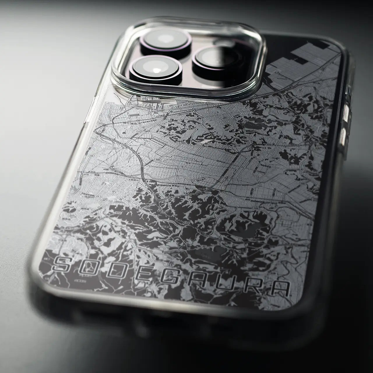 【袖ケ浦(千葉県)】地図柄iPhoneケース(MagSafeタイプ)モノトーン・iPhone 16 Pro 用