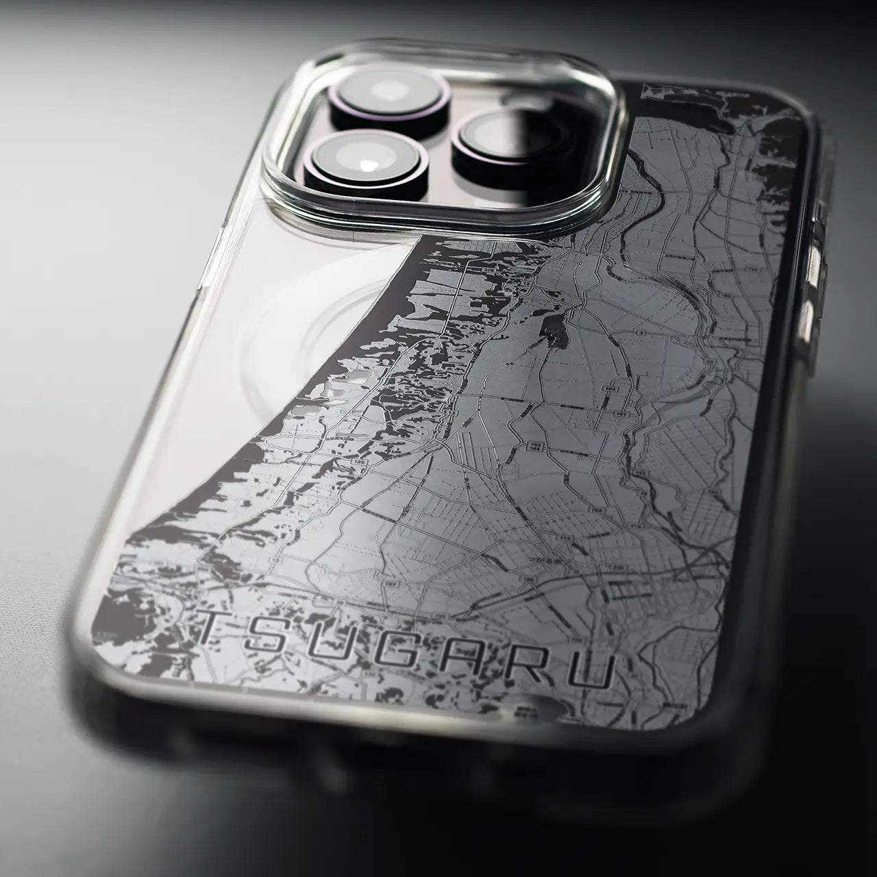 【つがる(青森県)】地図柄iPhoneケース(MagSafeタイプ)モノトーン・iPhone 16 Pro 用