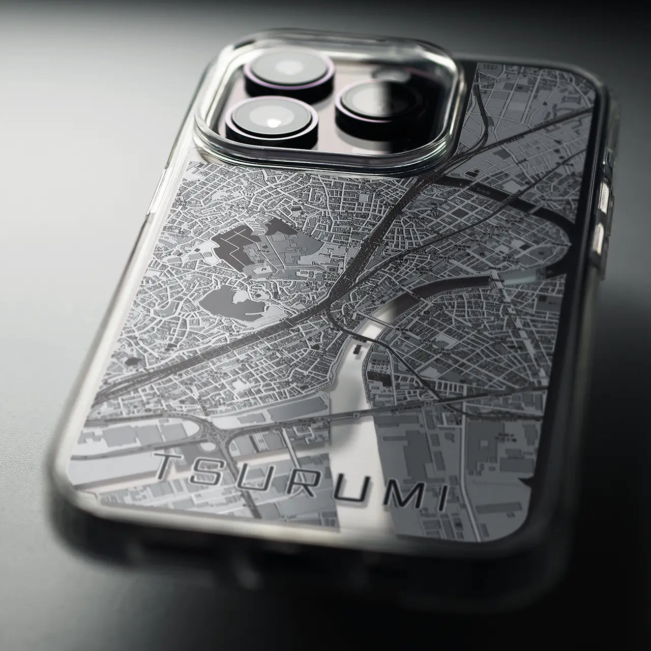 【鶴見(神奈川県)】地図柄iPhoneケース(MagSafeタイプ)モノトーン・iPhone 16 Pro 用