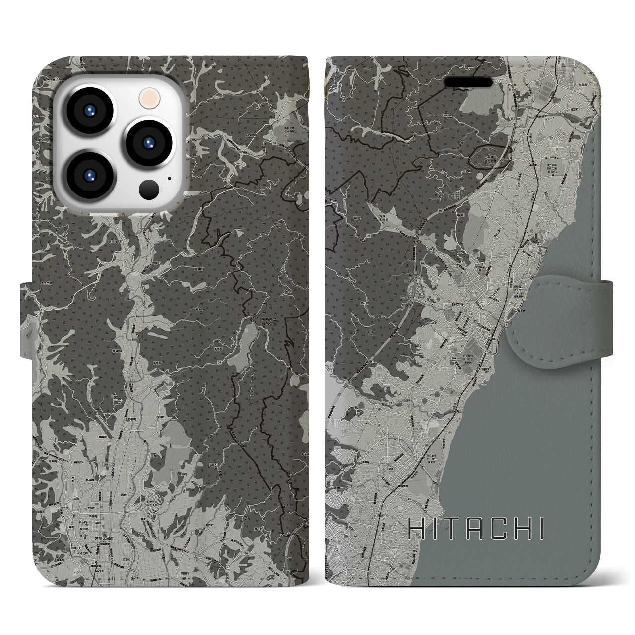 【日立(茨城県)】地図柄iPhoneケース(手帳タイプ)モノトーン・iPhone 13 Pro Max 用