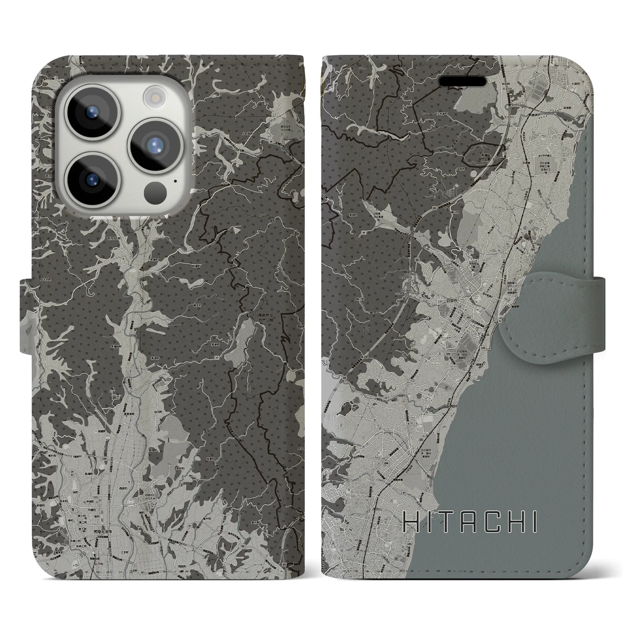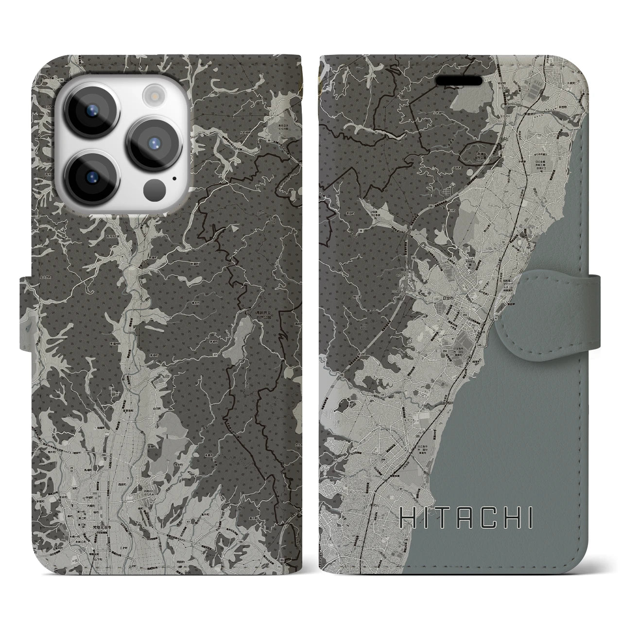 【日立(茨城県)】地図柄iPhoneケース(手帳タイプ)モノトーン・iPhone 14 Pro 用
