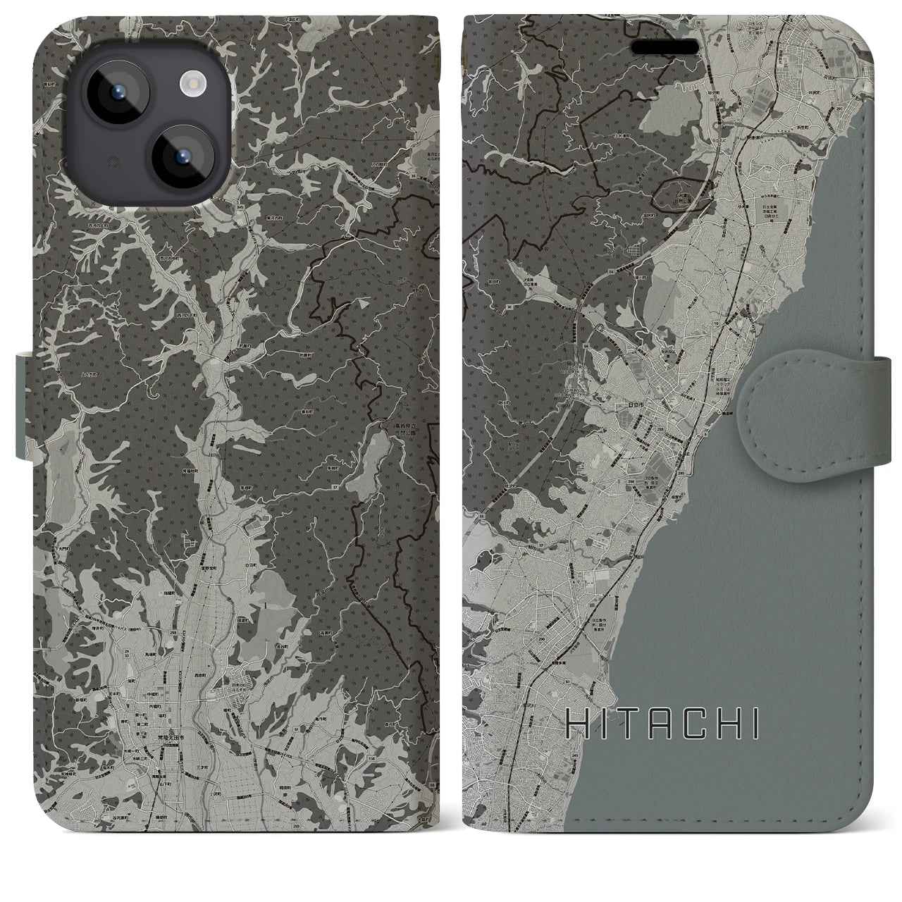 【日立(茨城県)】地図柄iPhoneケース(手帳タイプ)モノトーン・iPhone 14 Plus 用