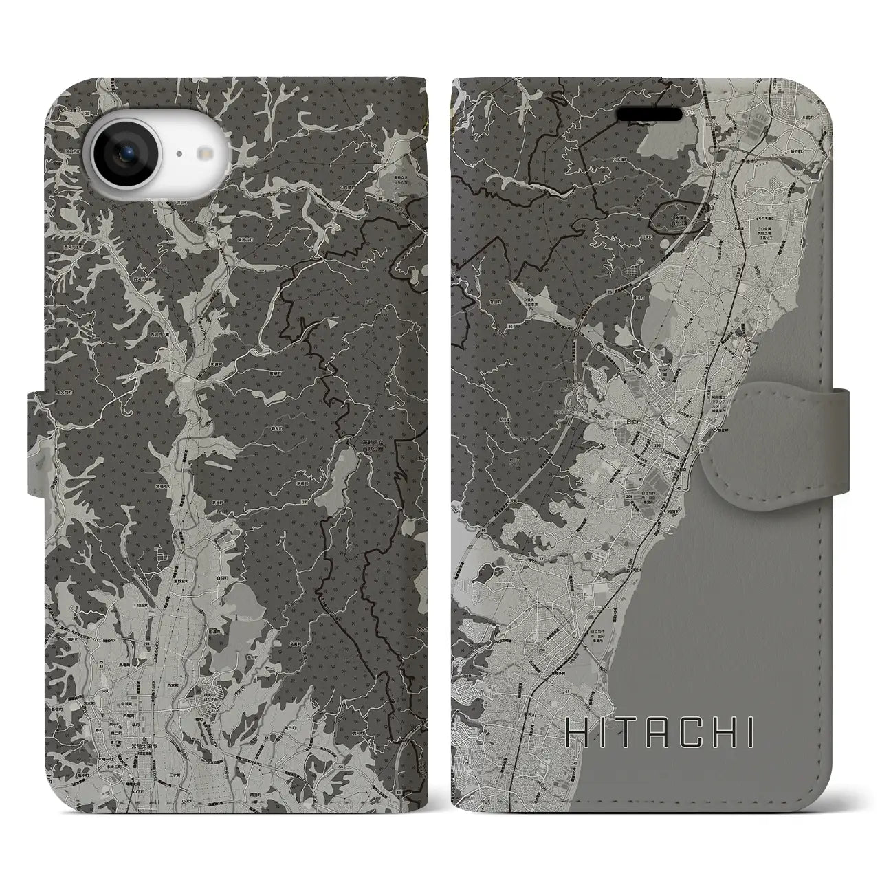 【日立(茨城県)】地図柄iPhoneケース(手帳タイプ)モノトーン・iPhone SE(第3 / 第2世代) / 8 / 7 / 6s / 6 用