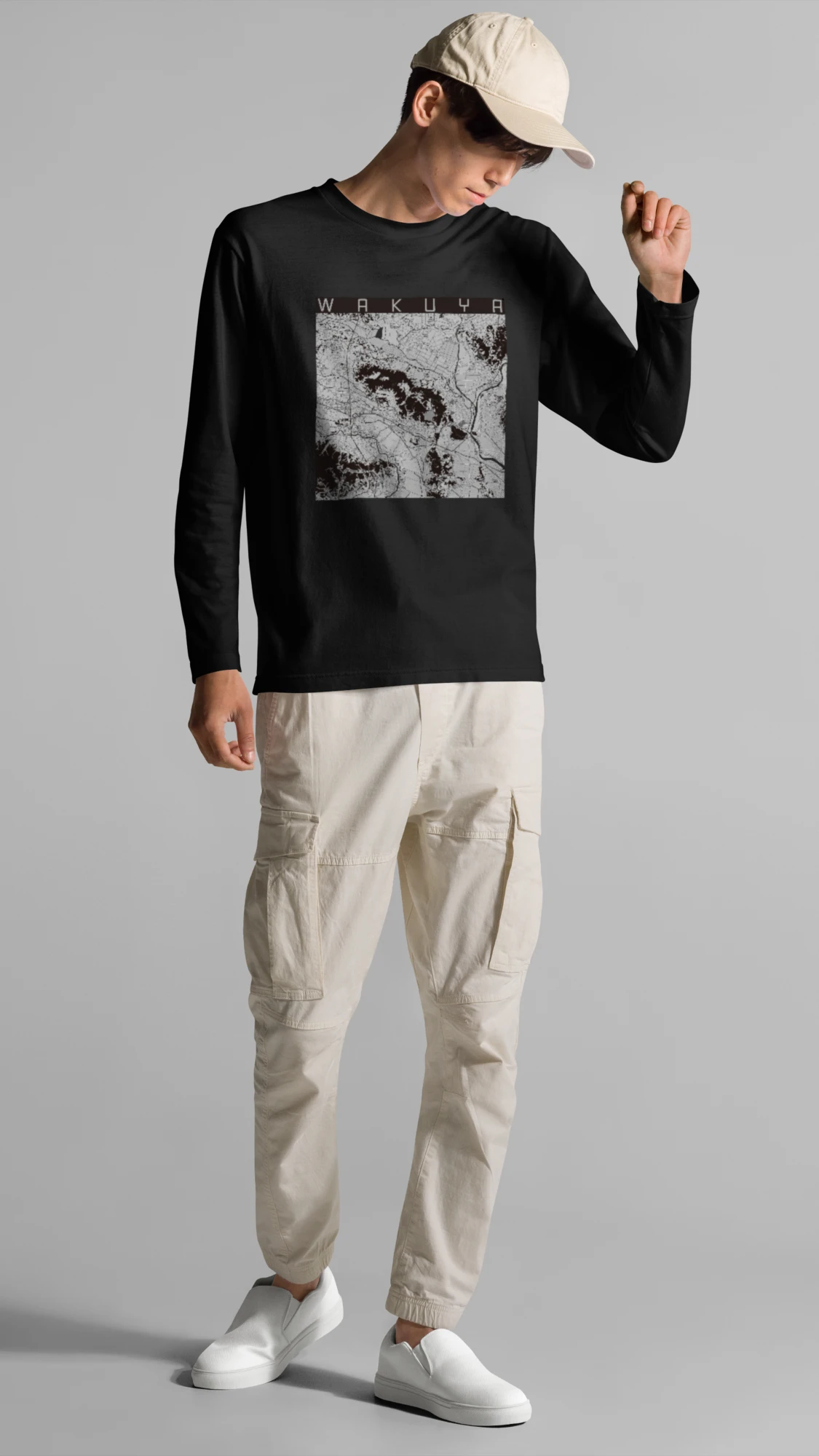 幅広いシーズンにフィットする長袖Tシャツにあなたの街「涌谷」のモノトーンマップをプリントしました。