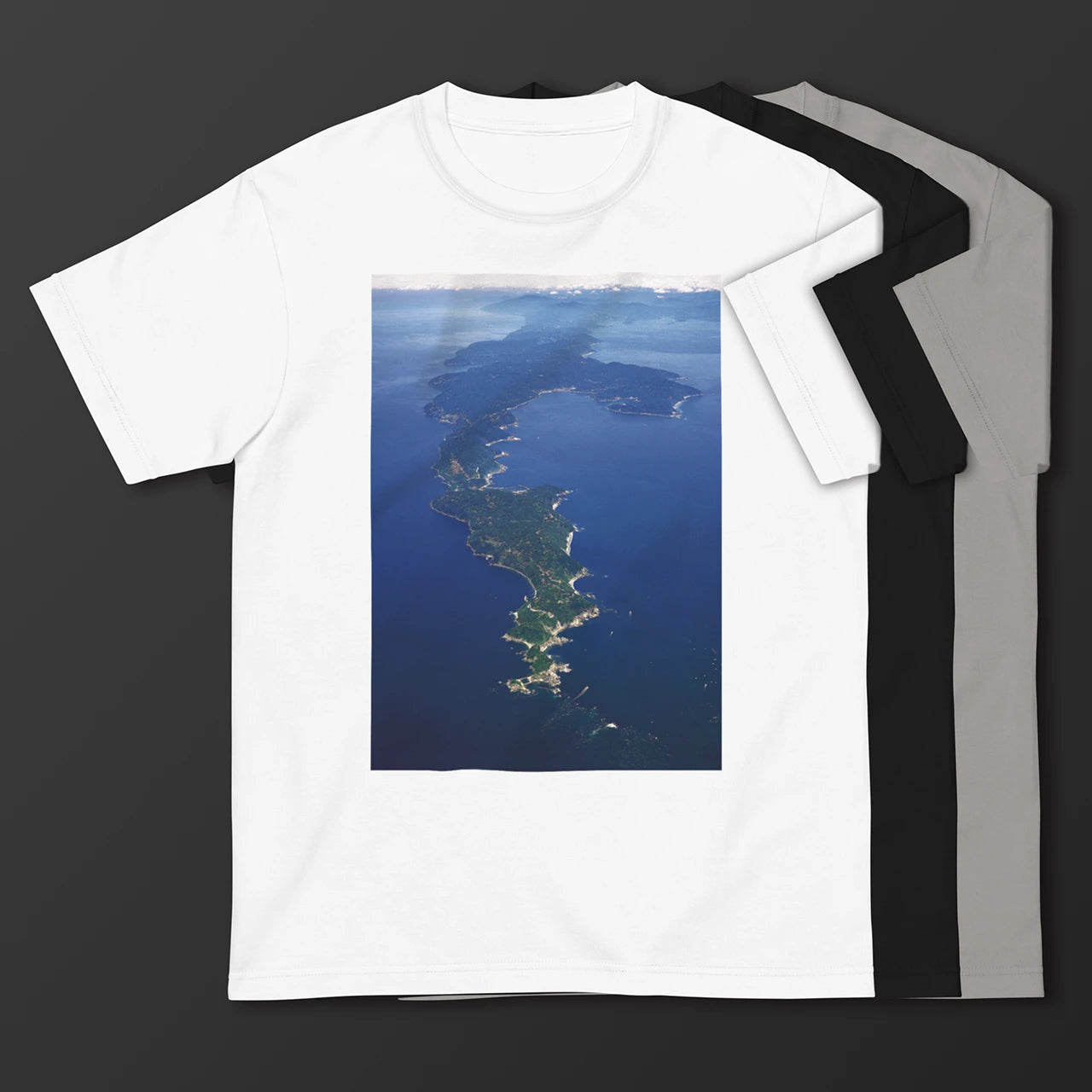 幅広いシーズンにフィットするTシャツのフロントに大胆な絶景写真。背中には地図のコンビネーション。しっかりした生地感の5.6オンスボディは一枚で着てもレイヤードにしてもOK。鮮やかなプリントで気分が上がる一枚です。